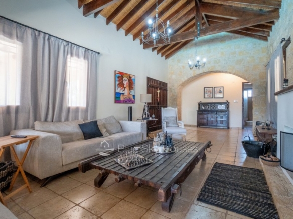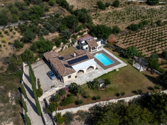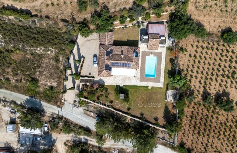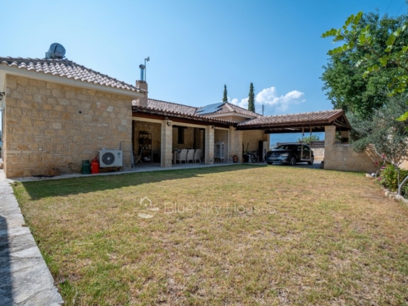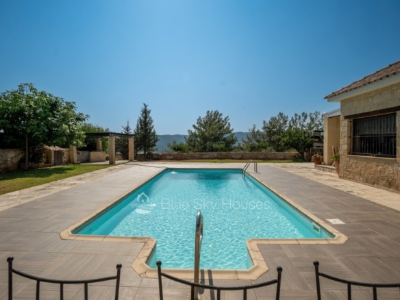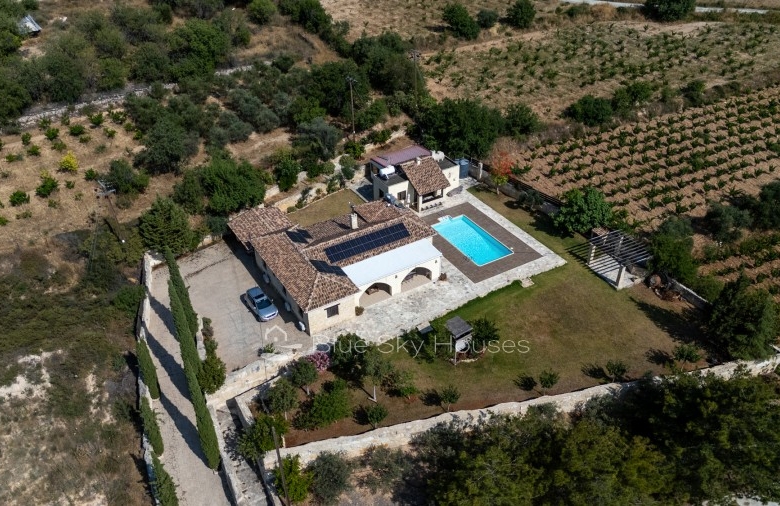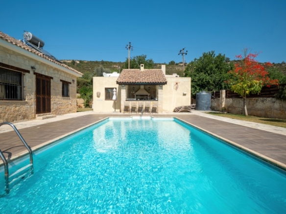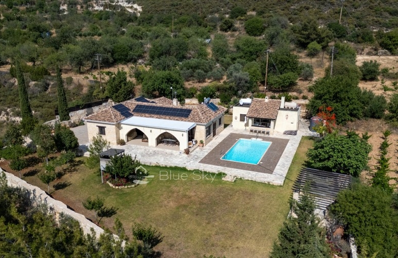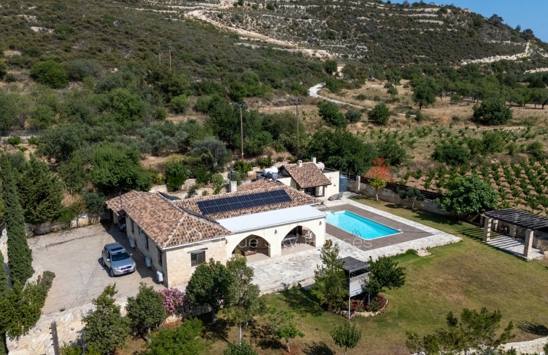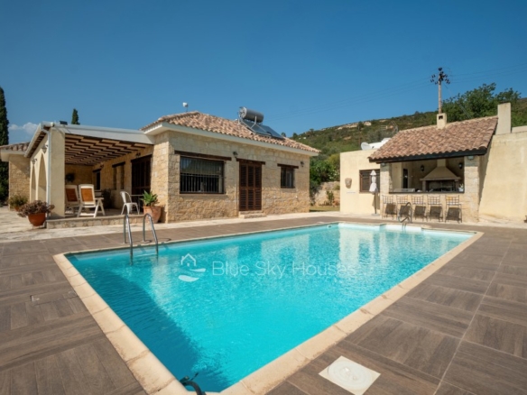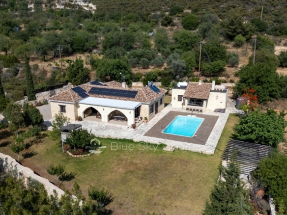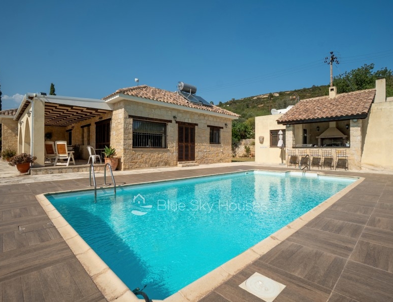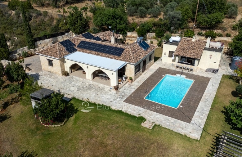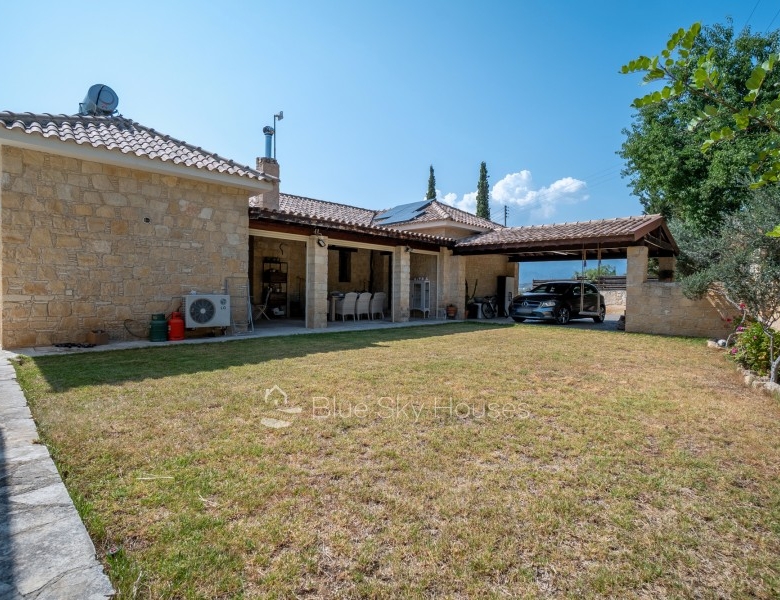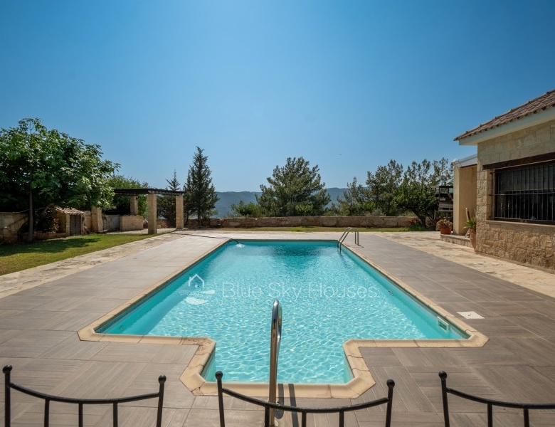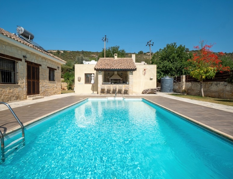 Experience the perfect blend of traditional charm and modern comfort in this beautiful and very stylish 3-bedroom detached stone house, located in the serene area close to one of the most picturesque villages in the Limassol region- Laneia. This exquisite residence, with a total internal surface of 124m², sits on a spacious 2135m² plot, offering a peaceful retreat just less than 30 minutes from the bustling city life.Nestled in a quiet area surrounded by agricultural land and some scattered residential developments, this property provides a private sanctuary accessible only through gated automatic gates, followed by a lovely road leading to your private oasis. This entrance opens up to an internal garden featuring a BBQ area with unobstructed views of the valley and nearby mountains, perfect for relaxation and entertaining.The house boasts three well-appointed bedrooms, main bathroom and fully equipped kitchen. Additionally, there is a separate building that could easily be transformed into a guest house. This building has two rooms: one is currently used as a laundry space and entertainment room, while the other can serve as a maid’s room, complete with its own bathroom.Modern amenities include photovoltaics for energy efficiency, a swimming pool for leisurely dips, a cozy fireplace, underfloor heating, and air conditioning, ensuring year-round comfort. The property also features plenty of space for kids to run and play, providing perfect outdoor time in a very private area. The thoughtfully planted garden offers beauty without requiring extensive gardening. This lovely, ideal home is perfect for those who want to enjoy privacy and tranquil living without being too far from Limassol. Don’t miss the opportunity to own this exceptional property that combines luxury, comfort, and natural beauty.