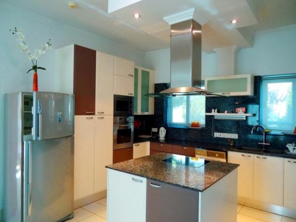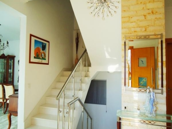 This exclusive & individually designed villa, in the sought after area of Mesovounia is built to the highest specifications on an elevated plot on the eastern fringes of Germasoyia, with distant views of the Mediterranean sea. This 5- bedroom villa with private pool and landscaped gardens is built on a huge plot has several additional features for real luxury living. The house includes an entrance hall, spacious living area, dining room, 5 large bedrooms , modern fitted kitchen, guest WC and large terraces. Equipped with air conditioning, solar water heating, double glazing windows, has a private swimming pool with terrace, BBQ place, patio, storage room, parking space and landscaped garden. Excellently located within easy reach to the beach and all city amenities.