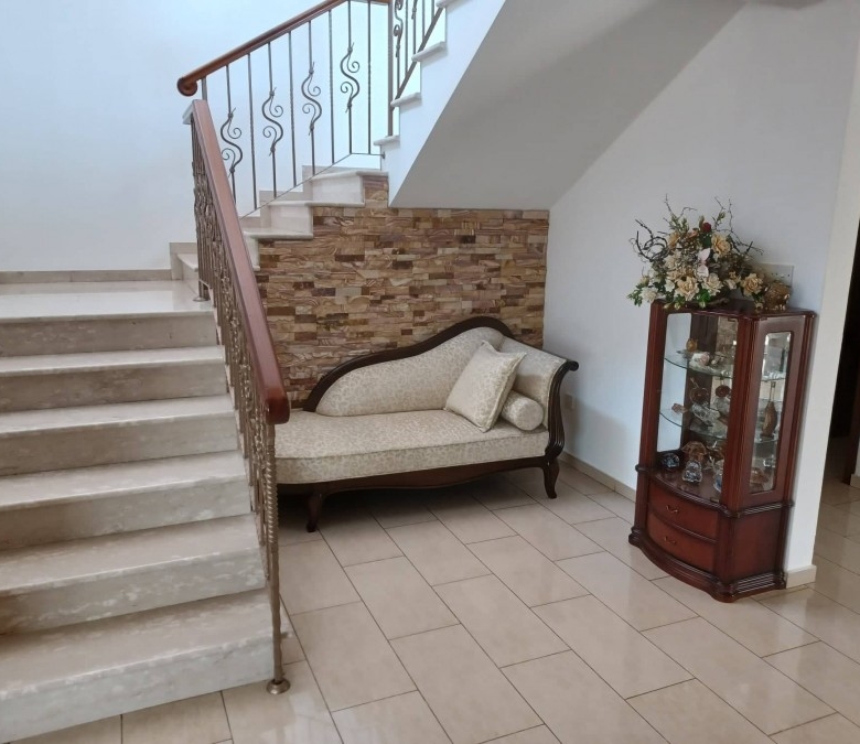 A spacious 5 bedroom detached house for sale in Ekali area, Limassol. It is located in a quiet residential area where all necessities are nearby and are just a short drive to the beaches and center. The house is split into 2evels. The ground level consists of a big living room with a dining and seating area, a separate kitchen, office, and guest WC. The first level has 4 bedrooms with a master en suite and walk-in closet, a family bathroom. Covered Parking for 4 cars, storage space and a garden. Perfect for a big or growing family!