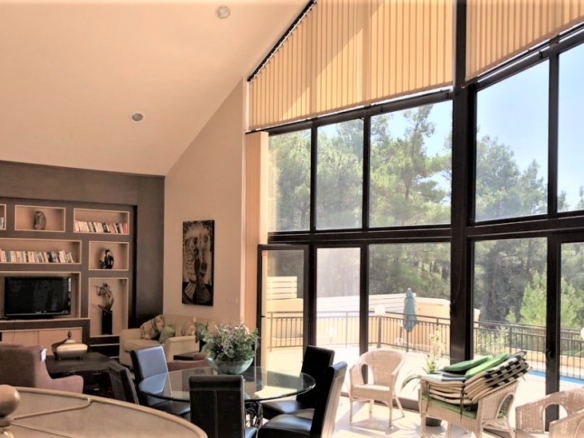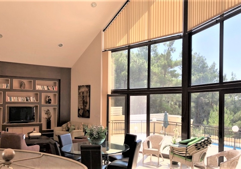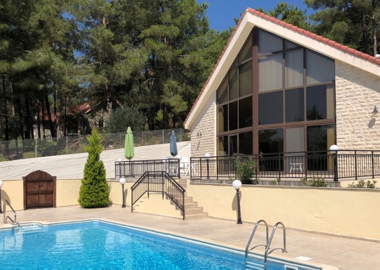 Your own peace of paradise awaits you. Stunning and unique luxury villa amongst the forest of Platres, offering peaceful living and complete privacy. The house is in excellent condition , built on 2 levels with 4 bedrooms, 3 bathrooms and large living / dining and kitchen areas. It contains a large private swimming pool and plenty of patio/terrace space to entertain a large number of guests. The villa is positioned in an elevated location, presenting amazing views towards the mountains and surrounded by forest pine trees.