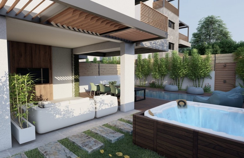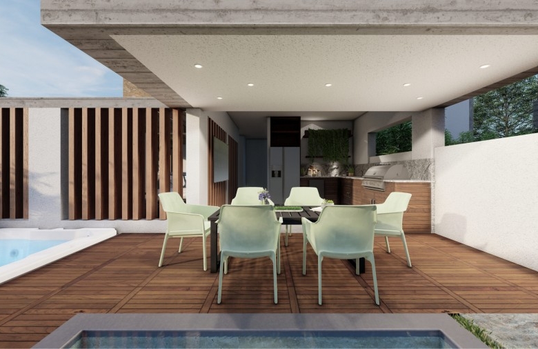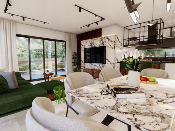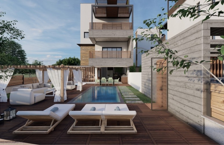 This project consists of 5 villas, each with its own individual pool area. Taking advantage of the plot’s high building percentage, the villas were designed to acquire every single square meter, and the height achieves a great viewpoint for all 5 villas. The choice of natural materials such as wood and marble gave this project its unique feel and general architectural aesthetic.