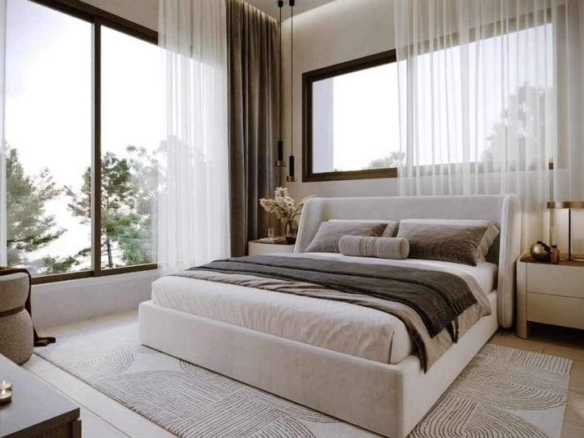 This 3-bedroom detached family house is nestled in nature near the tranquil pine forest of the Sotira area. The beautiful house benefits from breathtaking views of the Curium beach and the sea. It presents an attractive, modern, contemporary design of the façade and the interior spaces. The house consists of 2 storeys. The floor plan is very well thought-out and functional. The downstairs area features ample living and dining room, an open plan kitchen that boasts an island table, and a guest toilet. The living area opens up to a spacious covered veranda that seamlessly connects the interior with the garden area. The first floor incorporates 3 well-sized bedrooms and a family bathroom. The master bedroom enjoys its own bathroom for privacy and comfort. Lots of daylight comes through large windows into the inviting interior. In the privacy of a spacious garden, the family can relax and host its guests. Here, they will admire beautiful views of nature and the sea, with the sun setting over the horizon. Adding a private swimming pool will provide ultimate relaxation and enhance the quality of life.Completion – 4 Quarter of 2025.