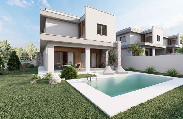 This is a beautiful residential development on the outskirts of Limassol, offering a choice of 3-bedroom villas, with provision for an extra bedroom. Set in a peaceful environment amongst pine trees and overlooking the Akrotiri coastline, its rural location ensures tranquility and privacy, yet it’s just a 10-minute drive from he cosmopolitan city Centre of Limassol. The design of the villas has been inspired by Mediterranean architecture, and they are built in large plots with the option of your own private swimming pools and barbecue/entertainment areas. A great selection of finishes creates appealing living spaces with wooden surfaces and the touch of natural stone. Let the magic of Souni captivate you with its views of the coastline and the surrounding Cypriot countryside. Set high above sea level, these properties are elevated from the humidity belt, promising residents a healthy and refreshing climate. The swimming pool is included.Delivery – 15 months.