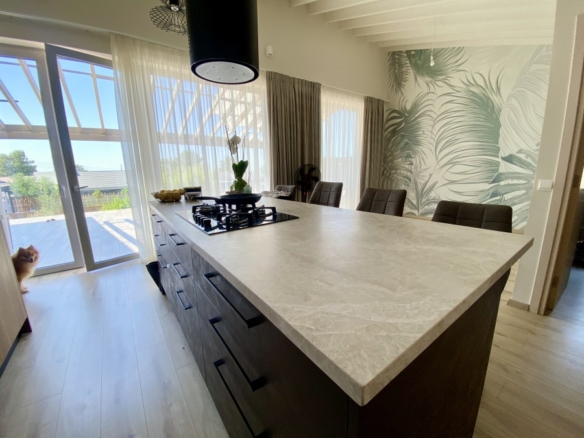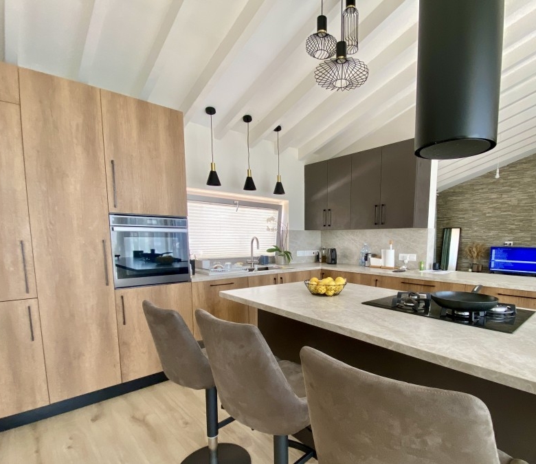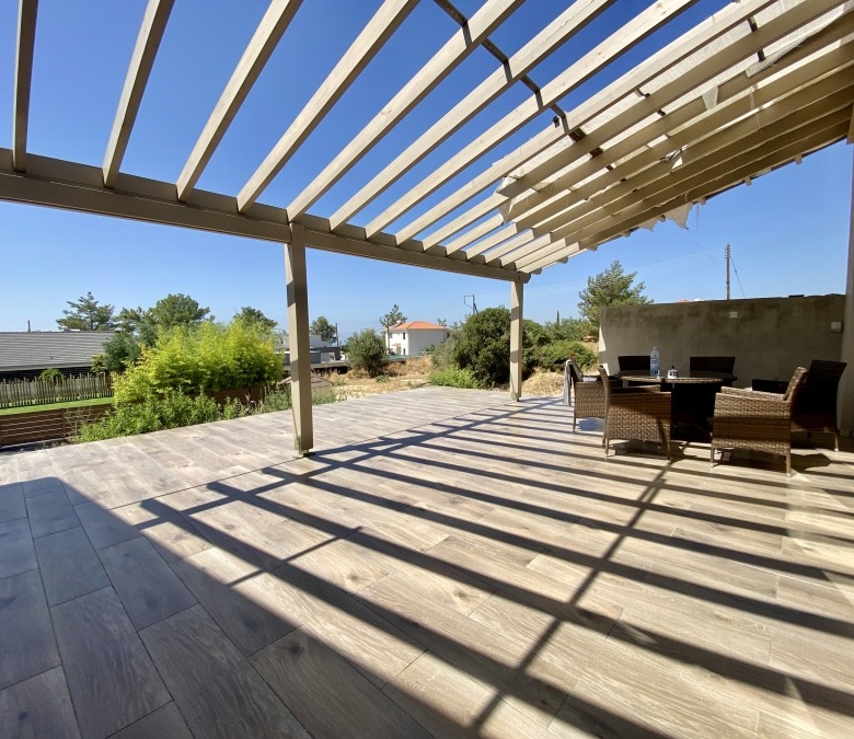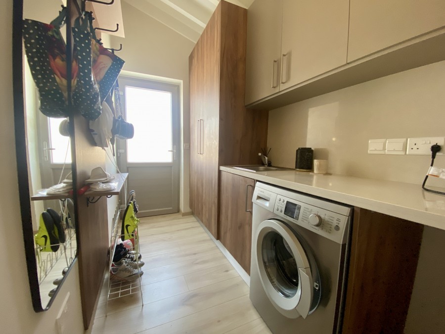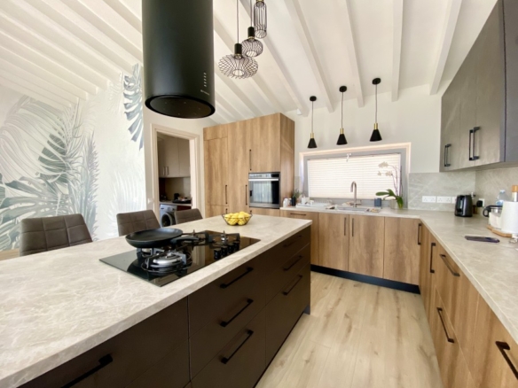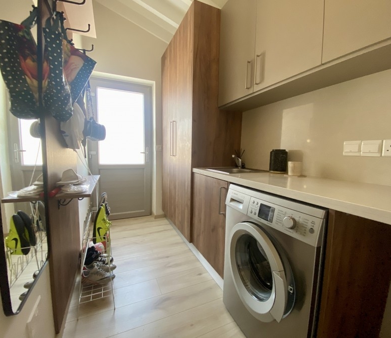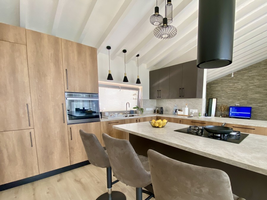 Discover this stylish new build 3-bedroom bungalow located in the charming area of Souni. Nestled in a nice neighborhood, this home is just a 6-minute drive to the highway and 15 minutes to Limassol, offering convenience and tranquility. The house features three bedrooms, with the master bedroom boasting a walk-in wardrobe and ensuite bathroom. The additional bathroom, complete with a bathtub, serves the other two rooms. The spacious living room area includes a modern fireplace and seamlessly connects to an open-plan, fully equipped kitchen and dining area. A utility room next to the kitchen provides another side entrance to the house. Outdoor living is a delight with a spacious deck furnished for relaxation, dining, or BBQs. There is ample space for a swimming pool, with provisions already in place. The house is fitted with underfloor heating throughout, except in the master bedroom and guest room. Additionally, two bedrooms are AC ready. The details, materials, and furniture in this home have been carefully selected with the help of a designer, ensuring a modern and stylish look throughout. However, despite its potential, the house requires renovation due to issues that arose during the construction period. The owner has a comprehensive report detailing these issues, available for interested buyers who are ready to invest and bring this house to its full potential. This bungalow could be the perfect home with the right investment, offering a blend of modern style and comfort in a desirable location.