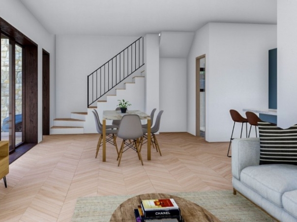 Exquisite hidden gem in the serene and picturesque area of Souni, Limassol. This beautiful property, surrounded by lush pine trees and vibrant greenery, offers a tranquil retreat from the hustle and bustle of city life while providing easy access to all essential amenities. Enveloped by majestic pine trees and rich greenery, it creates a peaceful and serene environment. Situated in a secluded area, offering the perfect escape for those seeking privacy and a connection with nature. Three spacious and beautifully designed bedrooms that ensure comfort and privacy. A cozy and inviting living area that seamlessly blends with the natural surroundings, perfect for relaxation and entertaining. Interiors feature a harmonious blend of modern elegance and traditional charm, creating a warm and welcoming atmosphere. A beautifully landscaped garden with a variety of plants and trees provides a serene outdoor space for relaxation and recreation. Completion – October 2025