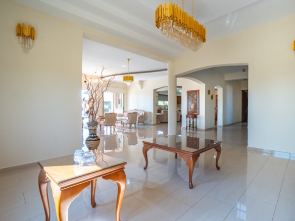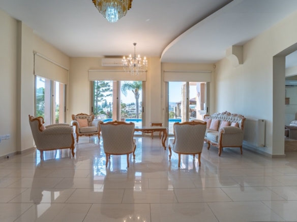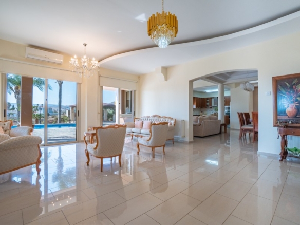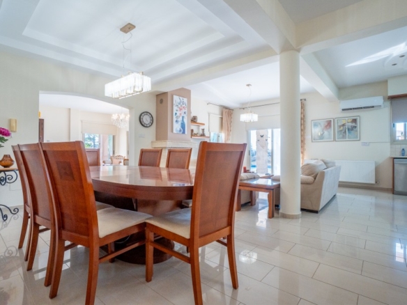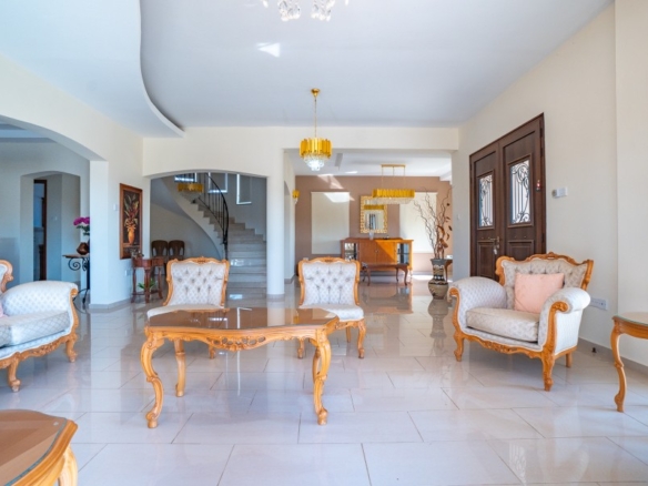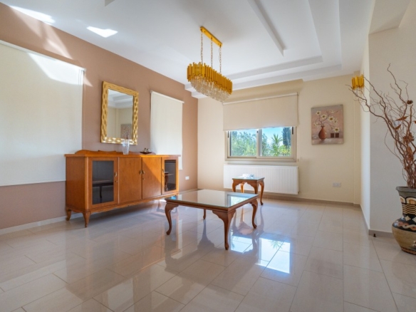 A Large luxurious Villa set in the hills of Anarita offers exclusive privacy and comfort. The villa, covering 360sqm has been built on a large plot of 3000sqm and is surrounded but mature landscaped gardens, with a large covered barbeque area and private swimming pool. As it is built on the hill is also allows for lovely views of the mountains at the back and sea views at the front. Upon entering the house you are met with two open sitting rooms either side of you and a large open kitchen in front with a connected dining area. One bedroom on the ground floor with its own bathroom give ease of living. Upstairs there is a large landing area with a small kitchenette, equipped with storage space and a washing machine. There are 3 large bedrooms on the first floor including the master bedroom with its walk-in wardrobe and ensuite bathroom.