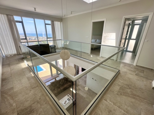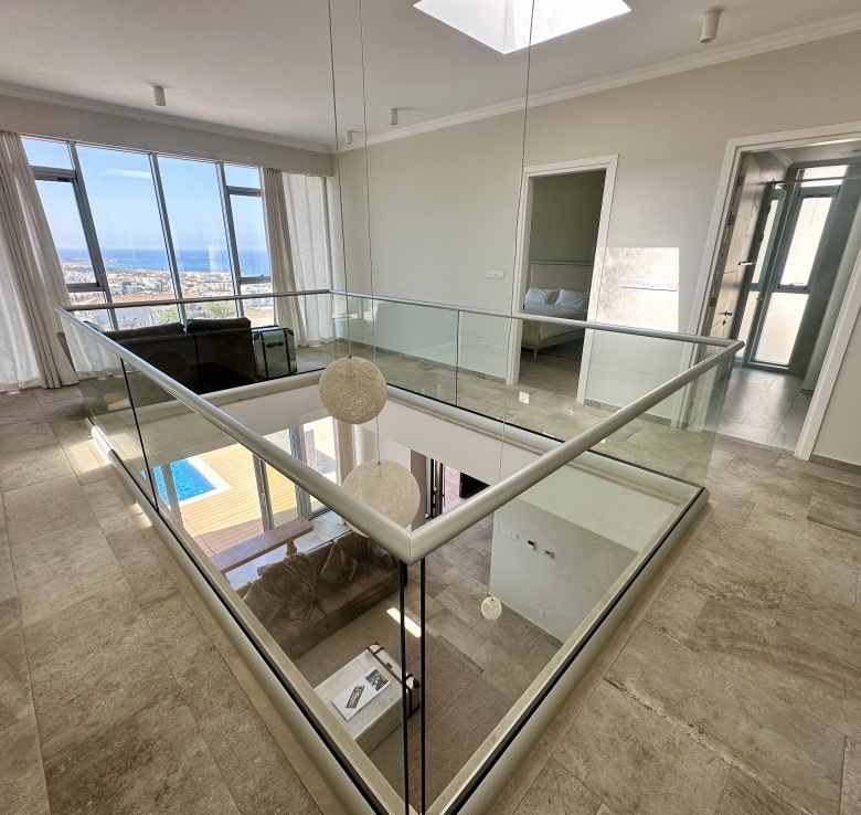 This luxurious new villa is located in the beautiful area of Chloraka in Paphos with fantastic views of the sea and the city itself.In total, the villa has 5 bedrooms, including 2 bedrooms on the ground floor and 3 bedrooms on the first floor. There are 3 bathrooms and a guest toilet. There is an extensive open living/dining area connected to a modern open kitchen. The property has two storage rooms, a laundry room, and there are many windows throughout the house, which makes it very bright and at the same time unique in its design and structure. It is fully air-conditioned and furnished. The property is equipped with a burglar alarm as well as a fire alarm.Outside there is a beautiful garden, swimming pool, barbecue area, and electric gates, there is ample parking that can accommodate up to three cars.The plot offers a beautiful view of the sea and mountains.This property has so many features to offer that one has to see it to appreciate it.The total covered area and area are 355 m2 and 600m2 m2.Title deeds are availableThe villa is fully furnished and ready to move in.