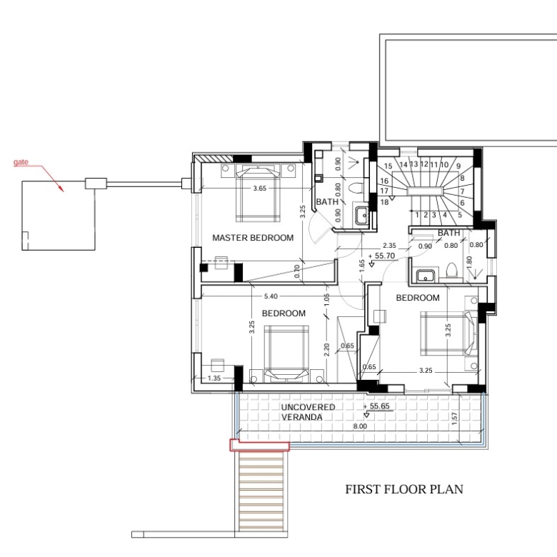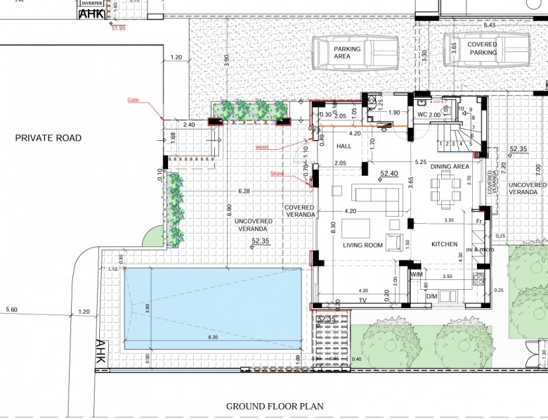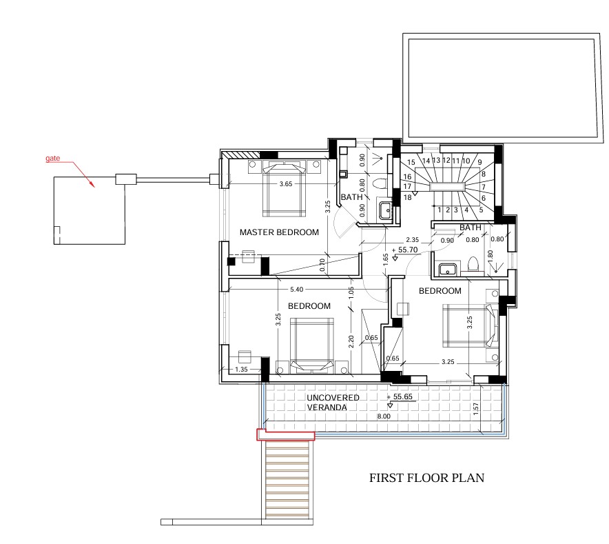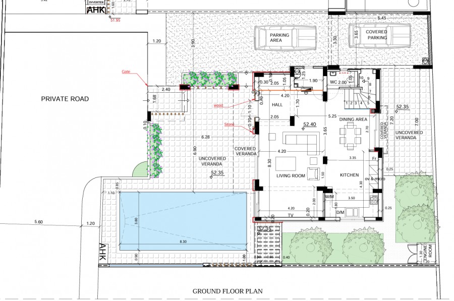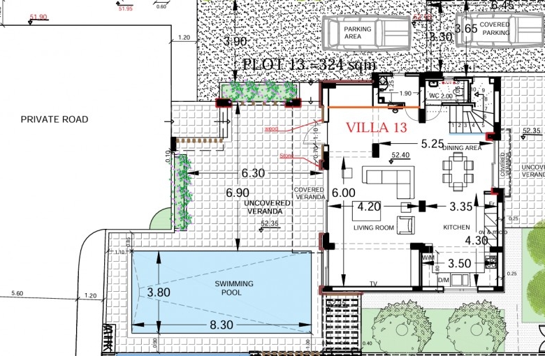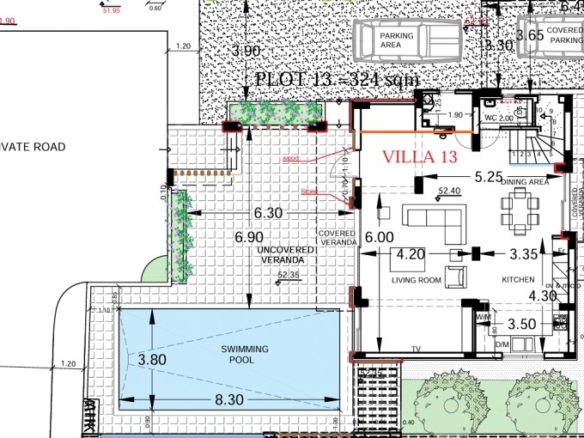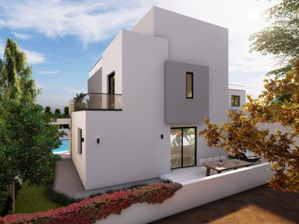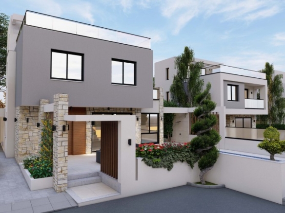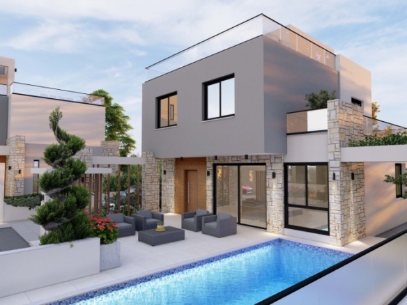 Spectacular villa with 5 bedrooms plus 1 room on the Roof Terrace, 4 bathrooms and a swimming pool in a quiet area, Chloraka.Entering the house you find a gorgeous open-plan setup, hosting a spacious living room that’s near the beautiful U-shaped kitchen with quartz counters with the dining area right next to it, worth mentioning is that the kitchen, living room and dining area enjoy big windows that bring in lots of light and offer outside views . Moving on to the staircase you find a neatly placed toilet room beneath it that serves the ground floor. Finally reaching the 1st floor you find all 3 bedrooms, with the master bedroom enjoying its own en-suite bathroom with another communal bathroom that serves the rest of the bedrooms. The villa features high quality specifications and finishes such as exterior natural stone cladding, marble staircase, quartz kitchen counters, aluminum & glass railings and much more. Roof garden terrace area of 49 square meters. Delivery – 8 months.