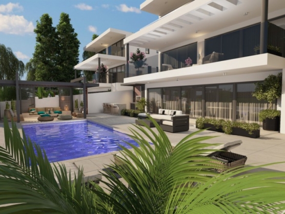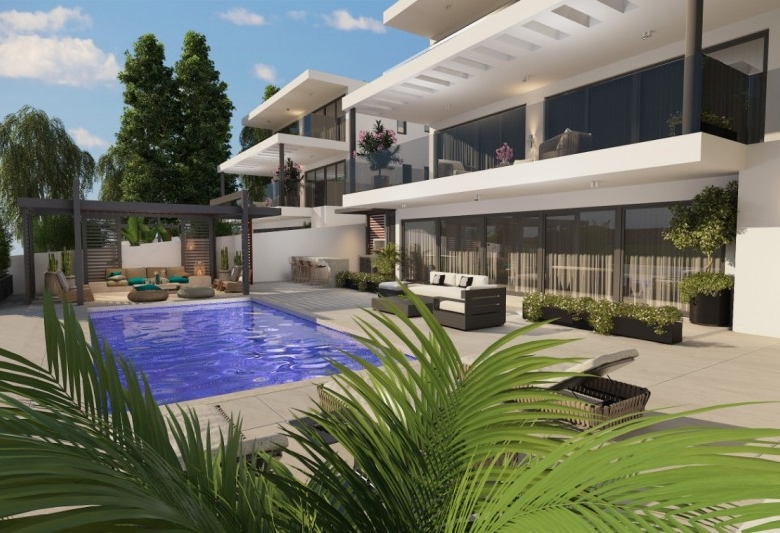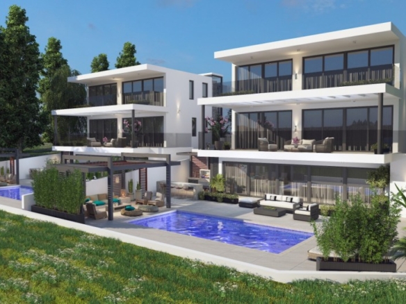 Luxury villas in Geroskipou with unobstructed views of the Mediterranean Sea. Spacious open plan living room, kitchen connecting to the outside area with private swimming pool. The dining area offering magnificent views of the Mediterranean Sea. Two bedrooms on the ground floor with a shared bathroom and three bedrooms on the second floor with en-suite showers. Energy-saving features offering maximum thermal insulation and soundproofing. Geroskipou is a coastal town in Cyprus, east of Paphos. It is the second-largest municipality in the Paphos District.Estimated delivery within 10-12 months.