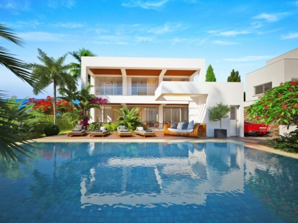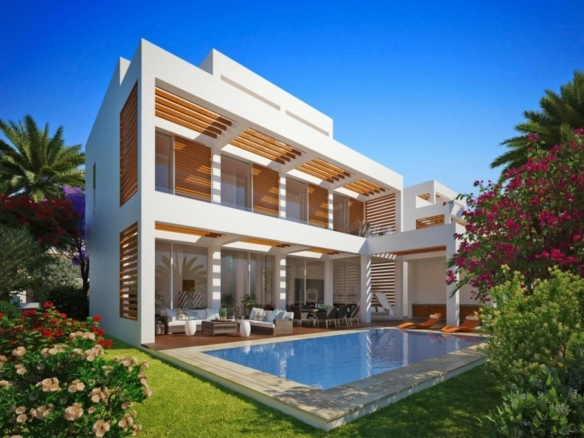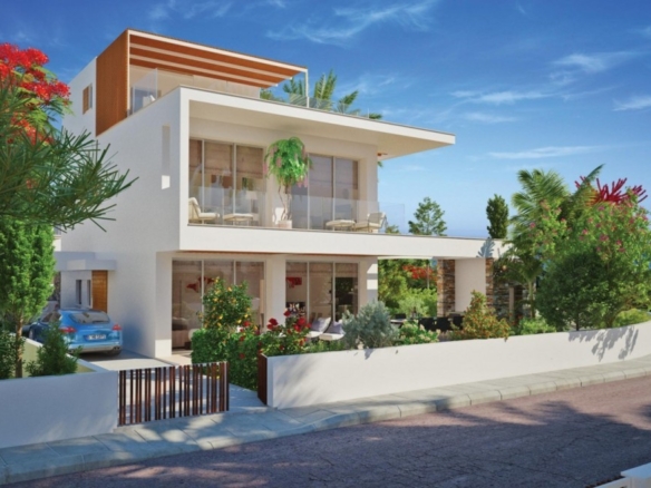 A modern design 3-bedroom villa for sale, located in the heart of the tourist area of Paphos in Cyprus. The property is designed in a large plot and enjoys a private swimming pool with spacious outdoor areas. The villa is located in front of one of the most famous sandy beaches in Paphos and enjoys easy access to a variety of restaurants, pubs, bars, 5-star beach resorts, and other amenities.