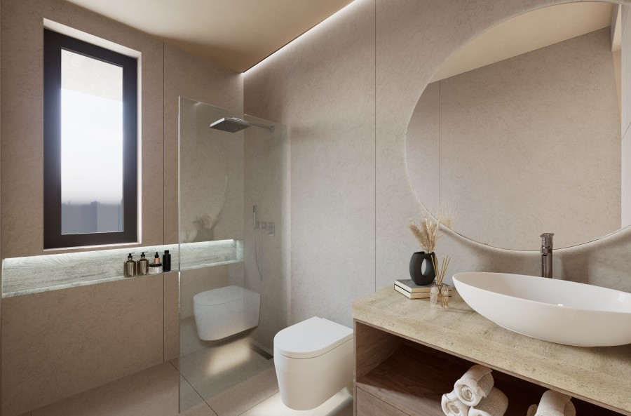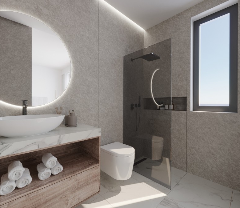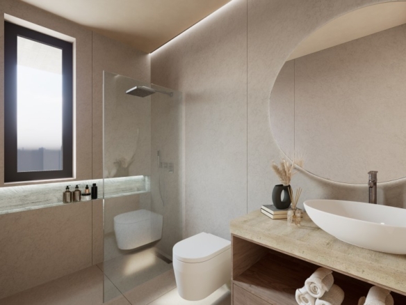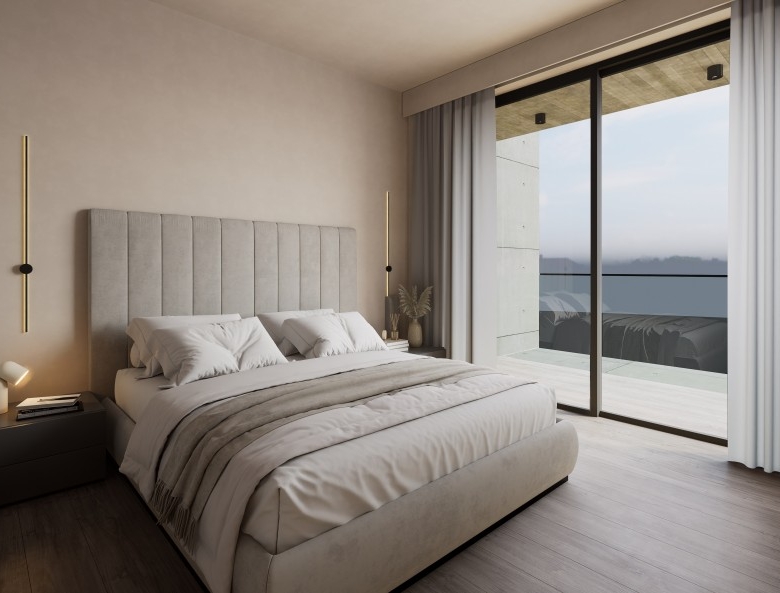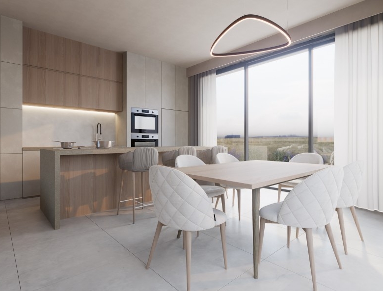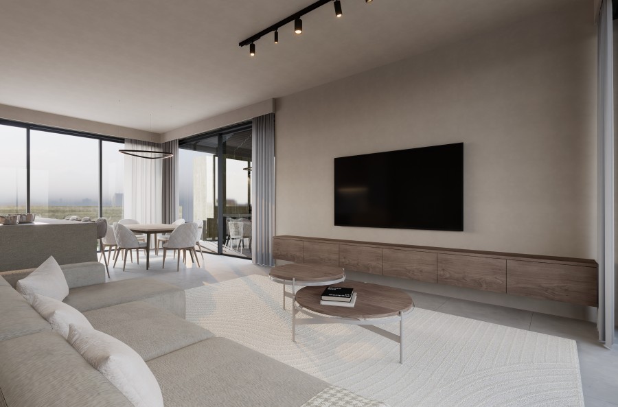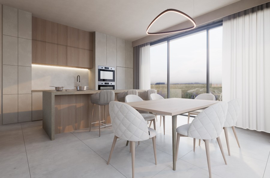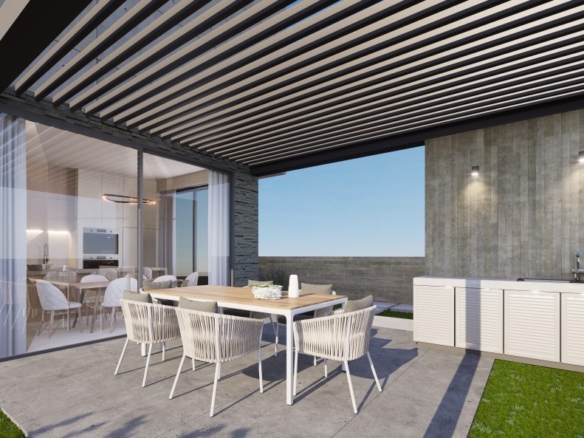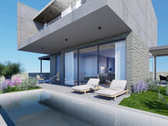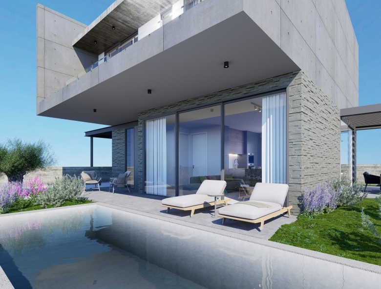 Introducing a collection of 12 three-bedroom luxury villas, located just 1km from the sea front in the touristic area of Geroskipou. Each villa features cutting-edge architecture, thoughtfully designed expansive interior spaces, and open-plan living areas adorned with high ceilings, inviting an abundance of natural light through floor-to-ceiling sliding doors and windows, as well as boasting high-end specifications including VRV for cooling and underfloor heating. This villa has a roof garden area of 44 square meters. Delivery – December 2026.