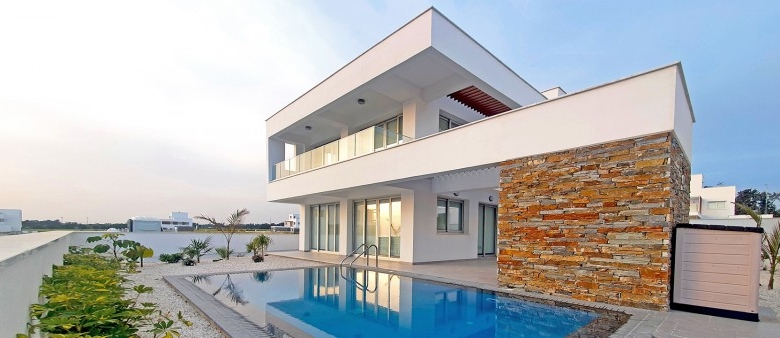 Modern coastal development with 3, 4 and 5-bedroom villas for sale in Paphos located in the heart of the tourist area. The villas are designed in large plots and enjoy large terraces and private swimming pools. The development is located in front of one of the most famous sandy beaches in Paphos and enjoys easy access to a variety of restaurants, pubs, beach bars, 5-star hotels, the Paphos waterpark and the Kings Avenue Mall.