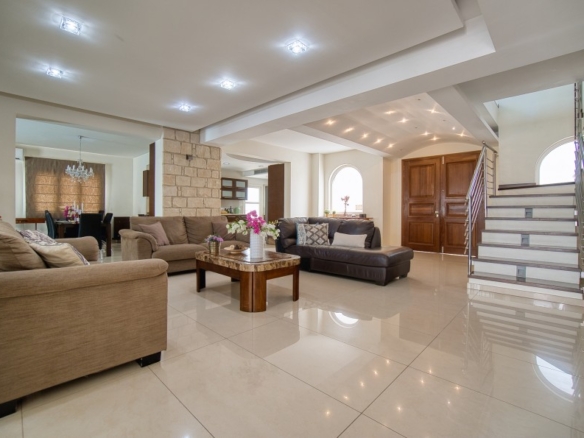 Luxurious villa in Kato Paphos, Cyprus. The villa boasts six bedrooms and five bathrooms, making it spacious and ideal for large families. Its prime location in the Universal area puts it within a convenient distance of various amenities such as hotels, the harbor, a mall, and Paphos town, all reachable within a short 5-minute drive. Despite its proximity to these amenities, the villa enjoys a peaceful atmosphere in a quiet neighborhood, offering the best location. The property comes fully furnished, ensuring comfort and convenience for its occupants. Additionally, it features modern amenities such as a private swimming pool, voltaic systems for energy efficiency, security cameras, and an alarm system for added safety. Car owners will appreciate the garage space available for 3 to 4 cars, along with two storage areas for added convenience. The presence of a fireplace adds a cozy touch, while full air-conditioning throughout the villa ensures comfort regardless of the season. Overall, this villa seems like an ideal retreat for those seeking luxury, convenience, and tranquility in the beautiful surroundings of Kato Paphos.