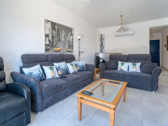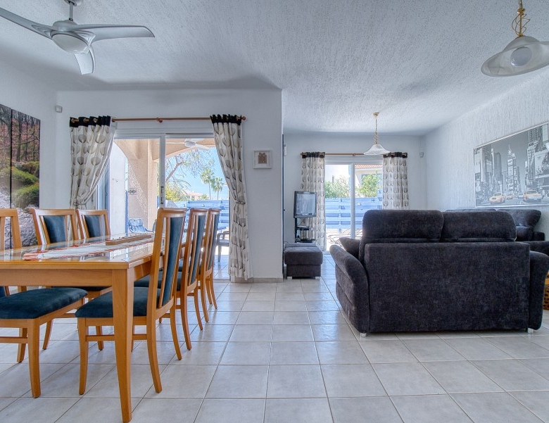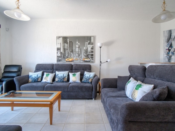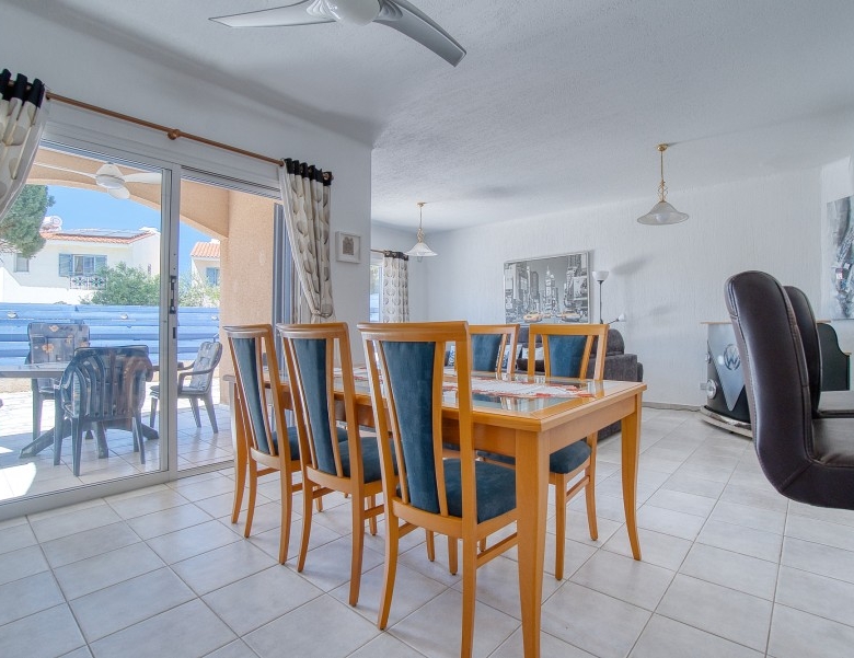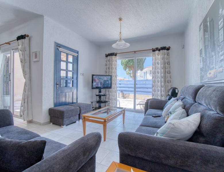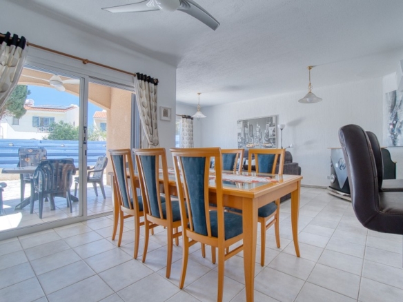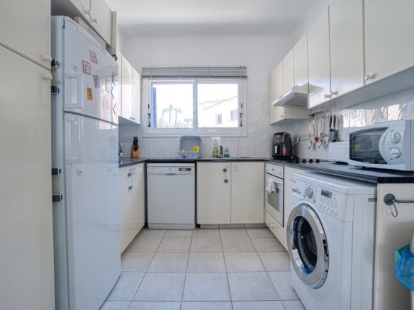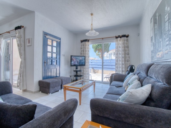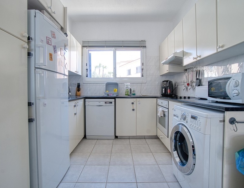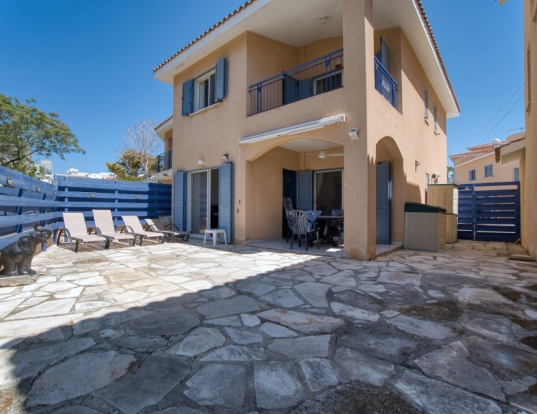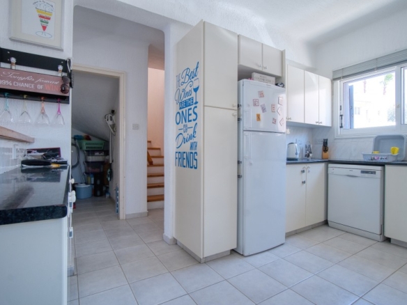 This beautifully maintained 3-bedroom villa is located in a peaceful residential area of Kato Paphos, within the prestigious Leptos Paradise Gardens complex. Ideally positioned, it’s just a short stroll from the sandy Municipal Beach, the picturesque harbor, vibrant nightlife, and popular shopping areas.The development offers a range of high-quality properties, including 3-bedroom villas, 2- and 3-bedroom townhouses, 1- and 2-bedroom apartments, and stunning penthouses. All homes are centered around a luxurious communal swimming pool, complete with sun terraces and beautifully landscaped gardens—perfect for soaking up the Mediterranean sunshine.Upon entering the property, you’ll find the kitchen to the left and a staircase to the right leading up to three spacious double bedrooms and two bathrooms. The ground floor features a generously sized living room, a separate dining area, and a well-appointed kitchen. Patio doors open to the private back garden—an ideal spot to unwind and embrace the Mediterranean lifestyle.