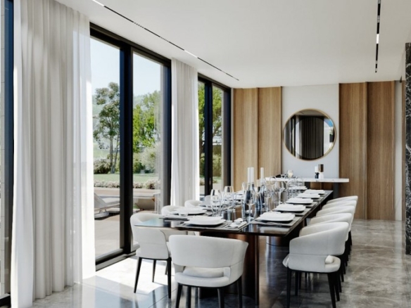 Luxurious 5-bedroom villa located in one of the most beautiful, exclusive areas in Paphos. Surrounded by nature and rural scenery, along with landscaped community sidewalks and gardens. Located within a stunning golf community that offers all the necessities to all its residents, including activities, a clubhouse, and many more. Amazing views of the sea and the mountain, just a 10-minute drive to the airport.Delivery – August 2025.