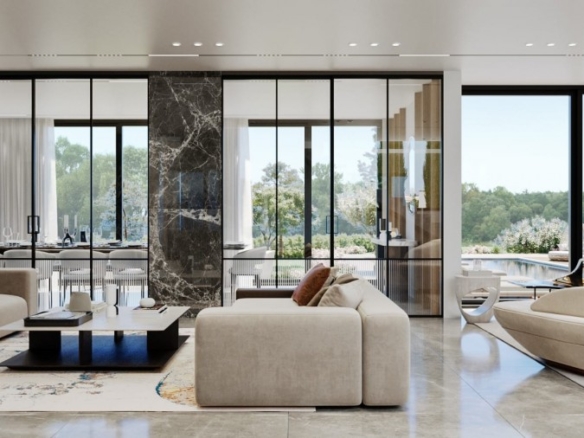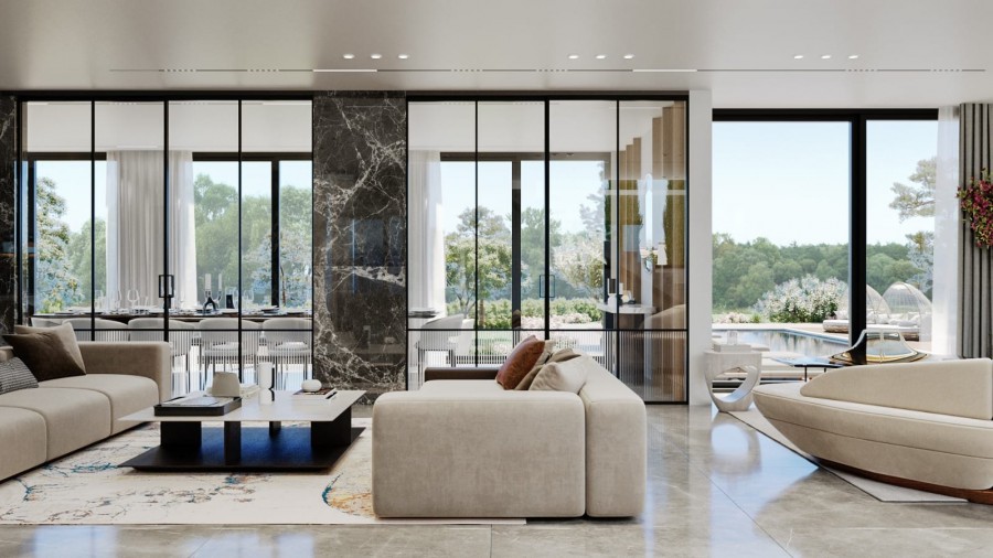 Luxurious 5-bedroom villa located in one of the most beautiful, exclusive areas in Paphos. Surrounded by nature and rural scenery, along with landscaped community sidewalks and gardens. Located within a stunning golf community that offers all the necessities to all its residents, including activities, a clubhouse, and many more. Amazing views of the sea and the mountain, just a 10-minute drive to the airport.Delivery – June 2025.