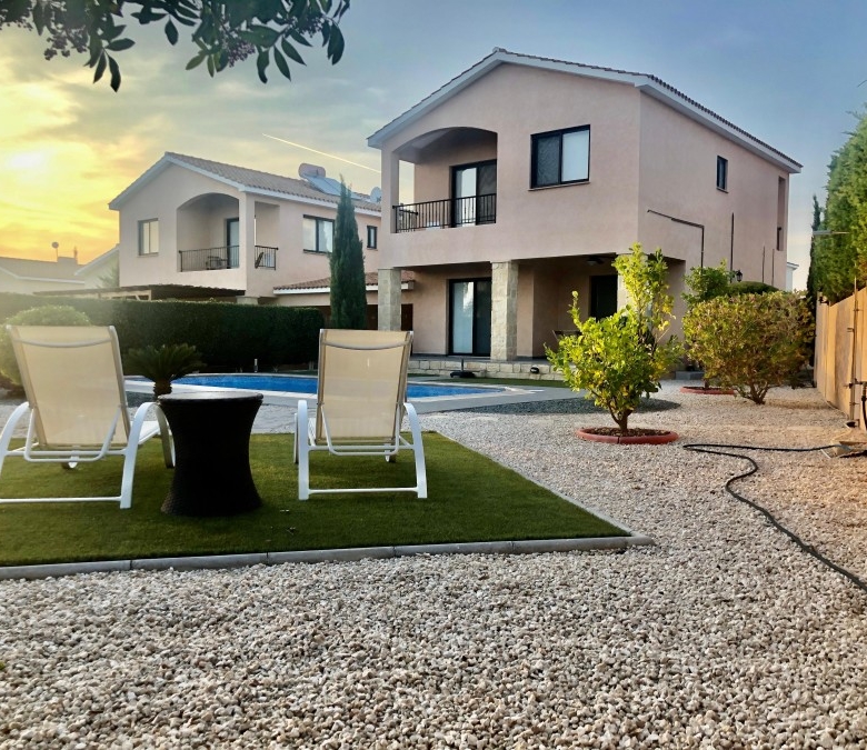Nestled in the prestigious Secret Valley area of Kouklia, this elegant 3-bedroom villa perfectly combines comfort, privacy, and Mediterranean charm. Designed with both relaxation and practicality in mind, the property is set in a peaceful residential neighborhood, surrounded by natural beauty and within easy reach of Paphos town, the airport, and nearby beaches.The villa features a bright and welcoming interior with spacious living areas, a modern fitted kitchen, and three generously sized bedrooms, making it ideal for families or those who enjoy entertaining guests. Large windows and sliding doors allow natural light to flow throughout, seamlessly connecting the indoor spaces with the outdoors.Outside, the property boasts a private swimming pool and a beautifully maintained garden, creating the perfect setting for sunbathing, alfresco dining, or simply unwinding in complete tranquility. A spacious balcony offers scenic views of the surrounding valley, adding to the home’s serene ambiance. For everyday convenience, the villa also includes a practical storage room.Whether you are looking for a relaxing holiday retreat, a comfortable family residence, or a sound investment opportunity, this villa is a truly attractive option in one of the most sought-after areas of Paphos.