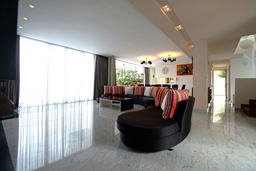 Amazing 4-bedroom villa + huge 1-bedroom guest apartment in the basement with access to a private pool and veranda, located in an elite, secure, and serene coastal complex in Akamas Bay, located in the most beautiful part of the island near the Akamas Peninsula. A private haven of outdoor beauty and indoor luxury, with stunning views of the sparkling blue sea and endless sky, the properties combine harmonious architecture and outstanding design.Spacious villa, filled with fresh air and sunlight, located on the first line of the sea with access to the beach, a completely landscaped plot, all with original design, floor-to-ceiling windows, and a large terrace on the roof. The interior combines contemporary elegance with traditional Cypriot simplicity to create a style that organically reflects the natural Mediterranean lifestyle. The house has everything you need for a comfortable stay and relaxation. All bedrooms are equipped with bathrooms, and the master bedroom, which is located on the top floor, is equipped with a private jacuzzi overlooking the coast. It is difficult to find words for the description, so we strongly recommend that you visit this villa and see all the delights with your own eyes.