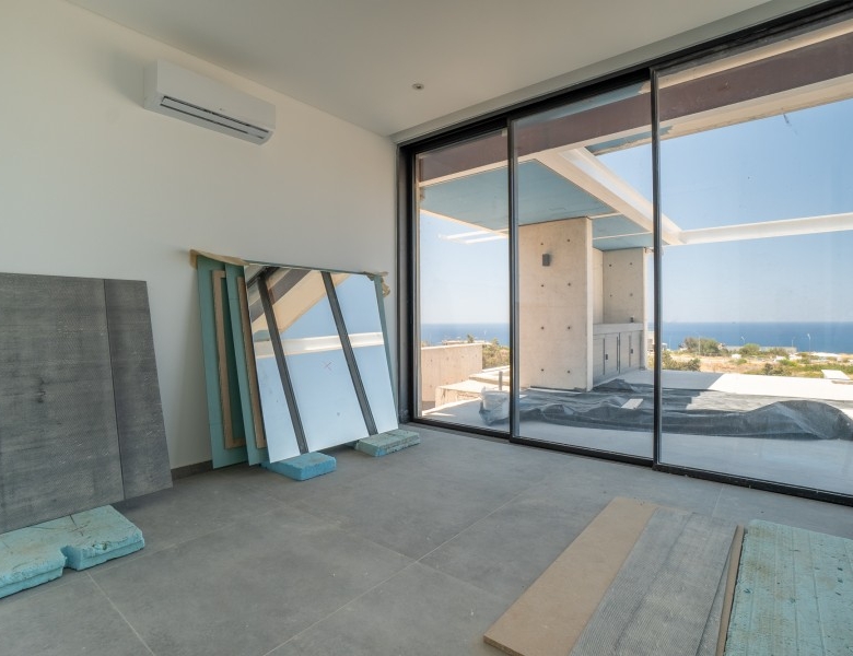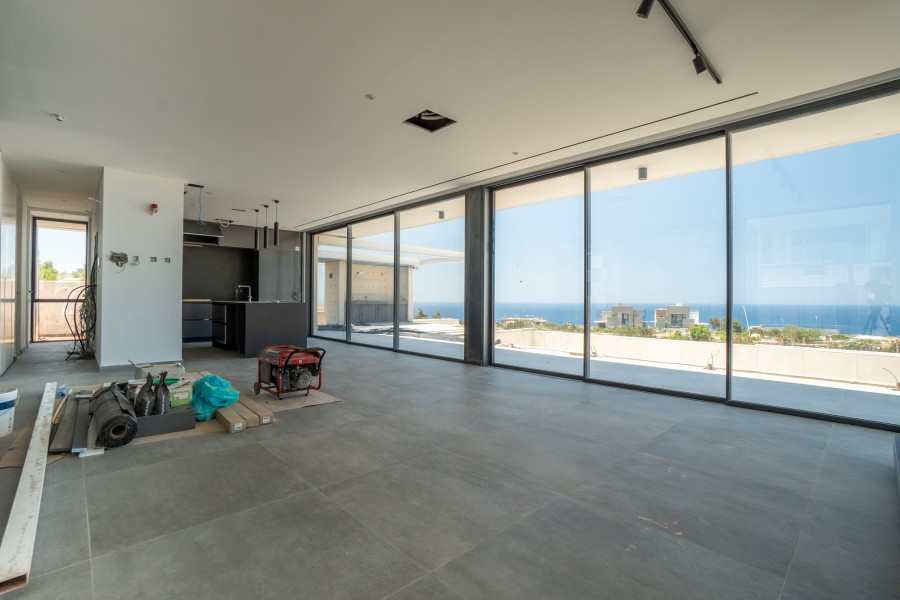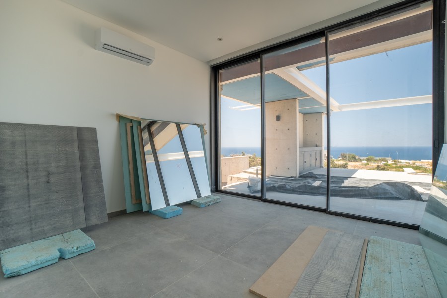 The villa offers a premium and luxurious real estate experience that seamlessly blends relaxation with style. Located in a prime and tranquil location with breathtaking views of the Mediterranean, this property is designed to offer its residents peace, comfort, versatility, and an unparalleled lifestyle, with the ability to enjoy a year-round vacation and qualitative remote work in a stunning environment. The property is located in an area with wide roads and sidewalks, underground cabling, and adjacent to a green area. Designed by an award-winning architect, Villa features a minimal and exclusive contemporary design with the highest standards of finishes and specifications. The property is surrounded by natural beauty and endless opportunities for relaxation and adventure, including proximity to the Akamas National Park, the Sea Caves, and a nearby beach. This villa boasts a large overflow pool, jacuzzi, BBQ area, fire pit, an outdoor relaxing area, and a roof garden. Whether you’re looking to spend a day exploring the outdoors, take a jog at the beach, or simply lounge by the pool to enjoy spectacular views, Villa has it all. Inside, you’ll find a spacious and modern interior with an imported Italian kitchen, wardrobes, and doors. Four bedrooms, three bathrooms, and a roof garden, perfect for entertaining guests or simply relaxing with family. With 346 m2 of total covered area and 92 m2 of uncovered verandas, there’s plenty of space for everyone to enjoy. Unleash the power of the Cypriot sun and enjoy uninterrupted, sustainable energy for your villa with high-quality photovoltaic panels.Featuring modern and high-standard finishes and specifications, including double glazing, energy-efficient windows, thermal insulation, underfloor heating, smart home technology, security alarm, CCTV cameras, and fire alarms, this villa is designed with your comfort and security in mind. Additional features like a secure play area, elevator, solar system, and provision for an electric car charger add to the property’s luxury and convenience.