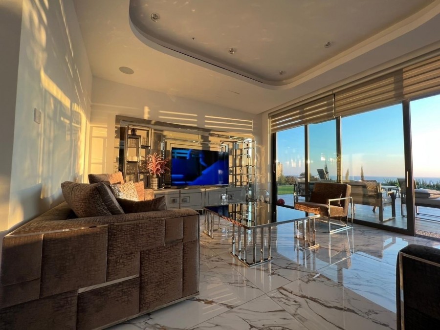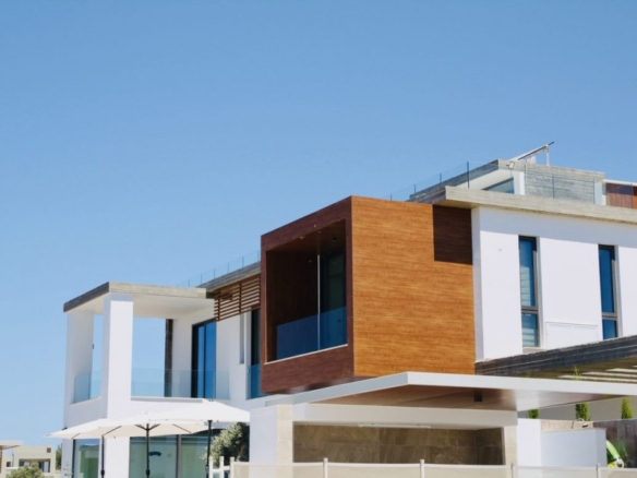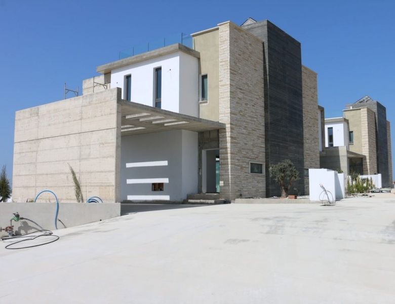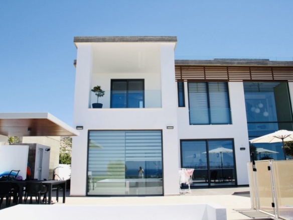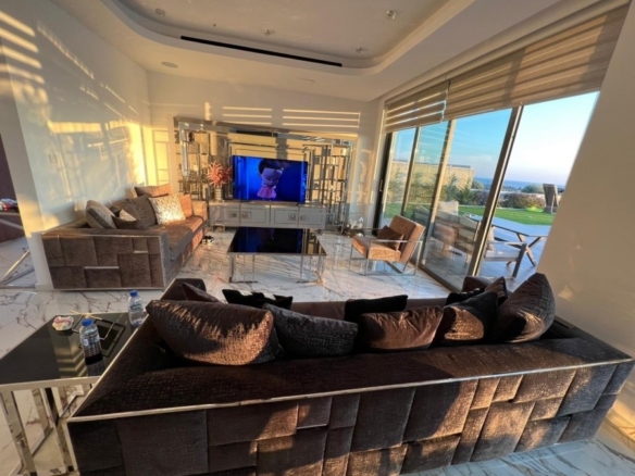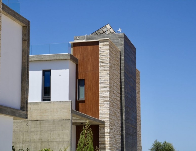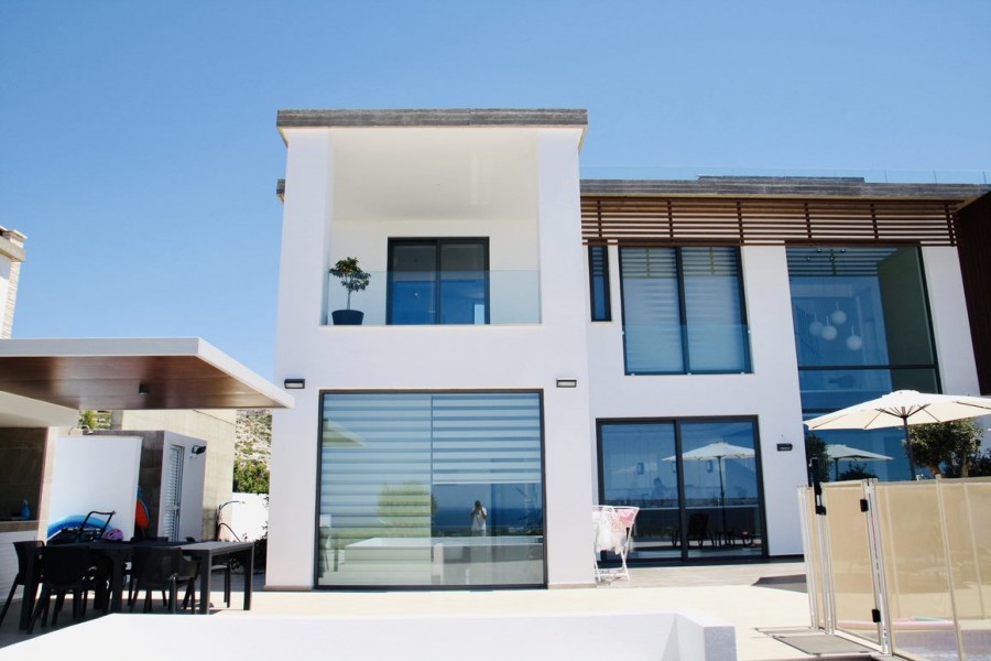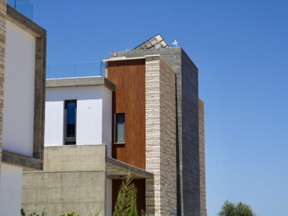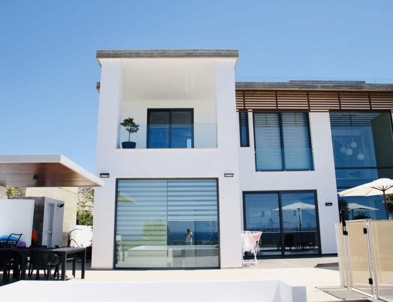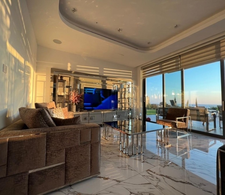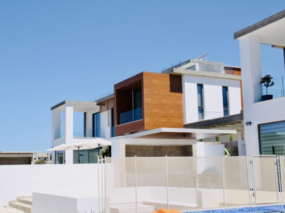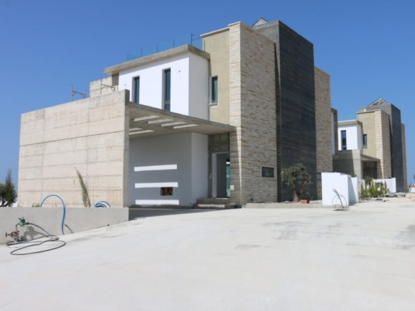 There is no other way to describe the panorama of unobstructed views from this designer Villa in Peyia. With the ocean spread out in front of you and the mountains behind, you get the best of nature’s offerings in these Luxury Villas in Peyia. Any home that is near the sought-after Sea Caves in Paphos is immediately a cut above the rest. This beautifully designed masterpiece, with its floor-to-ceiling windows and artful outdoor texturing in natural stone and wood, stands out among the prestigious homes in this area. The paved outdoor pergola, terraces, and overflow pool, along with a personalized BBQ area, lie amidst manicured landscape gardens. Every single detail of this home was carefully designed to ensure that the stunning exterior blends seamlessly into the wondrous natural surroundings.This is an oasis-style dwelling that invites you to relax in comfort and serenity. The interior is sleek and stylish in contemporary minimalism. Big and spacious, it is perfect for a large family with three double-sized bedrooms, four bathrooms, and private covered parking. Walk-in closets and ensuite bathrooms are spaciously set out with Spanish marble tile, adding an aura of sophistication. The modern open-plan kitchen and dining area is light and elegant, completed with top-quality finishes for an upmarket family. The additional option of a bedroom, office, or storage room that can be customized to your preference allows you to make this stunning Villa in Peyia your own unique home.
