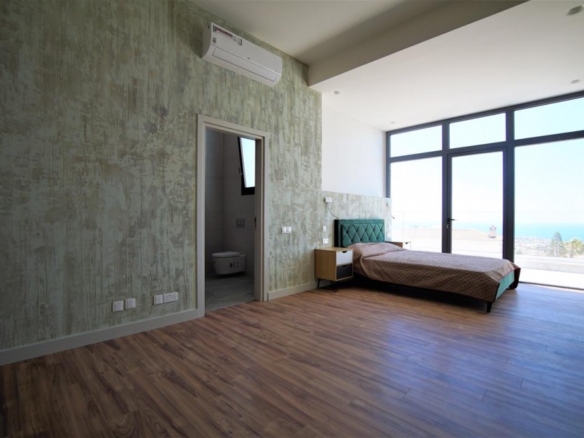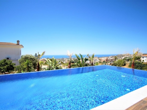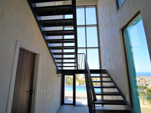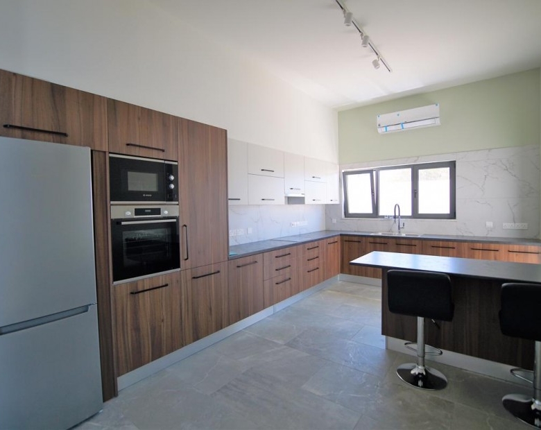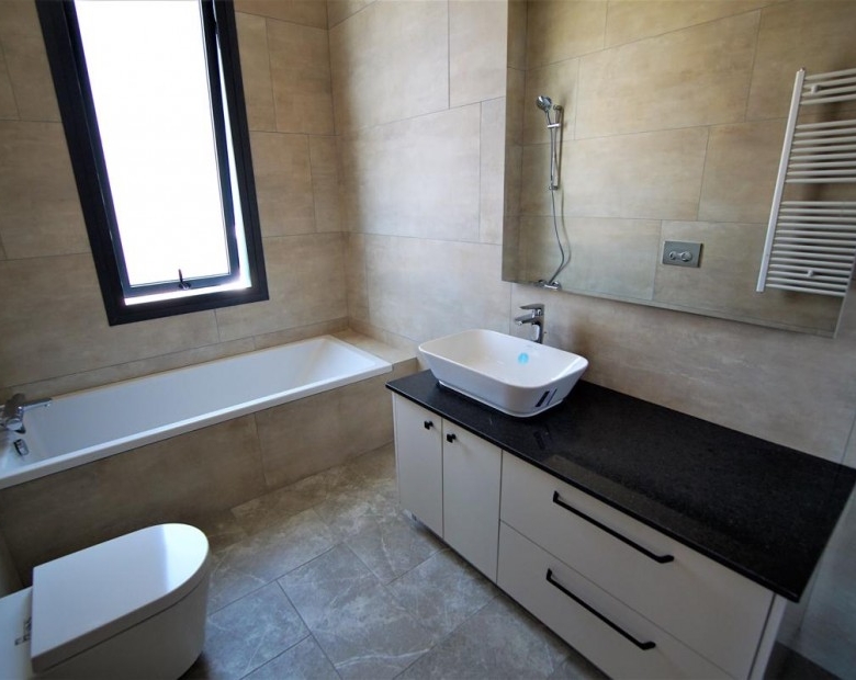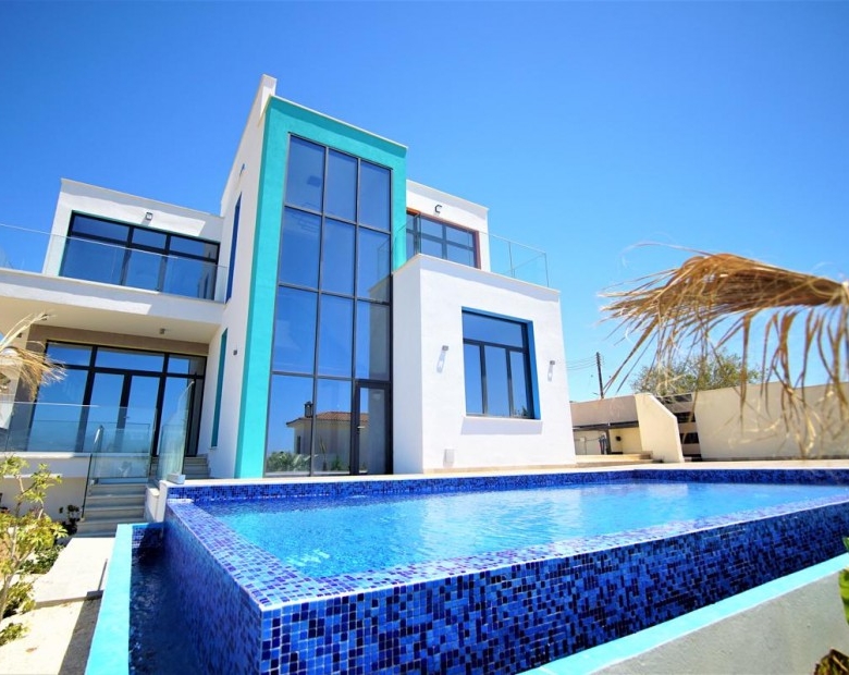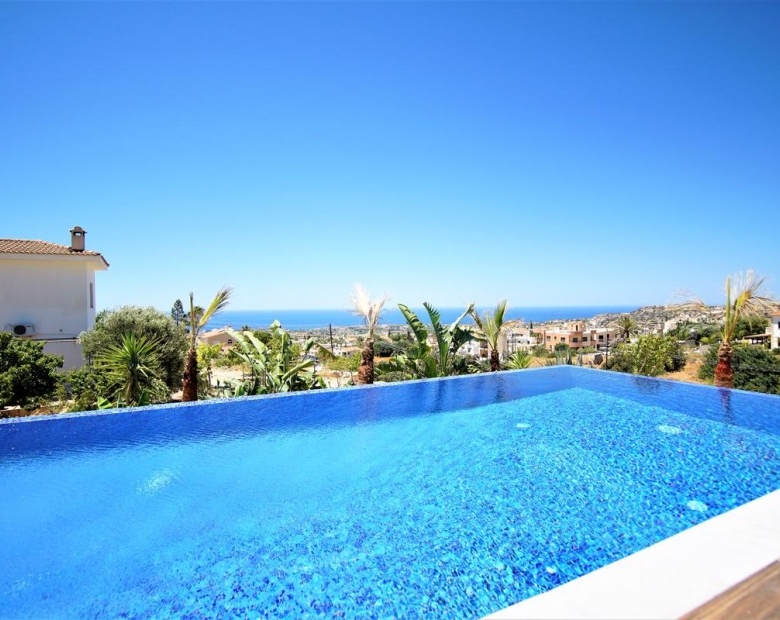 We offer you a new, luxurious villa with spacious, bright bedrooms, a cozy courtyard, and a private pool with an infinity effect for your comfort. The villa is located in a quiet area of Paphos-Peyia with magnificent views of the sea, mountains, and the rich nature of Cyprus, at a safe distance from the tourist crowds. This is a unique place to live and relax. There are more than 320 sunny days a year with an average temperature of 25 degrees. Peyia is the most comfortable place to live at any time of the year. The village of Peyia was founded during the Venetian rule in Cyprus. It is believed that the name of the village came from the Italian word “baia”, which means “bay, bay.” Over time, the foreign word was transformed and began to be pronounced as “peyia.” Local architecture eloquently testifies to the many-sided historical past of these places. In the vicinity of the village grow bananas, oranges, lemons, grapes, almonds, carob (carob), olives, and various vegetables grow. Banana plantations occupy about 119 hectares and are the only place in Cyprus where bananas are grown. Within walking distance from the villa, there is everything you need for everyday life: restaurants, bars, shops, public transport, school, kindergarten, recreation area, pharmacies, banks, administrative offices, and parks. Only a few minutes away are the cozy beaches, Corallia and Coral Bay. These beaches are ideal for families with children – sand and a calm sea. It is an ideal place for walking, jogging, or cycling. The villa was built with the use of new security technologies, energy saving and high-quality materials. The villa has an innovative design with maximum use of daylight.