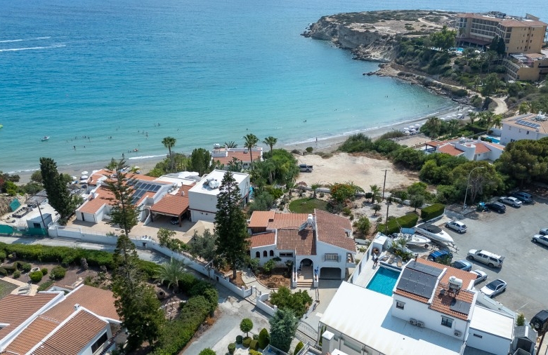 Amazing sea views villa in Coral Bay. Located right on the in Coral Bay beach, this 3 bedroom house is only a few steps away from the famous Coral Beach Bay sea. The breathtaking sea views can be enjoyed from the living room and bedrooms. The property benefits from one covered parking space and one store room at the ground floor. It also has a fireplace and 2 sitting rooms. It’s close to Sentido Hotel as well as Coral Beach Hotel and also near restaurants and shops.