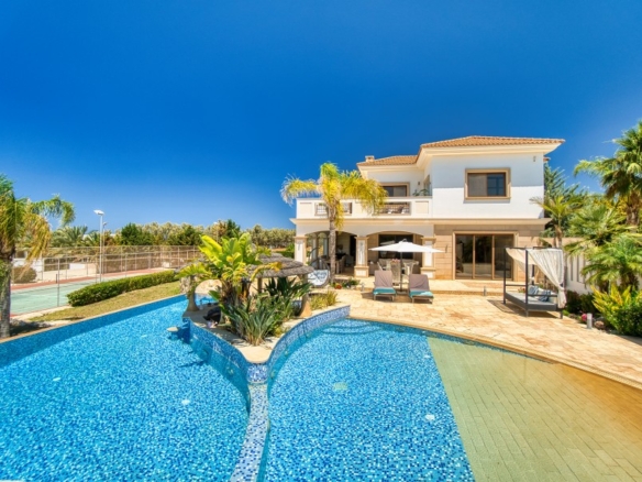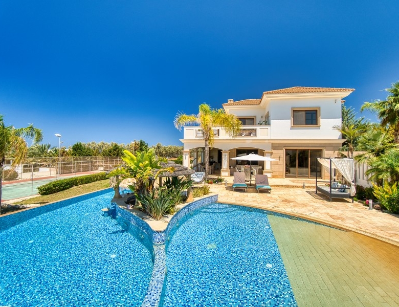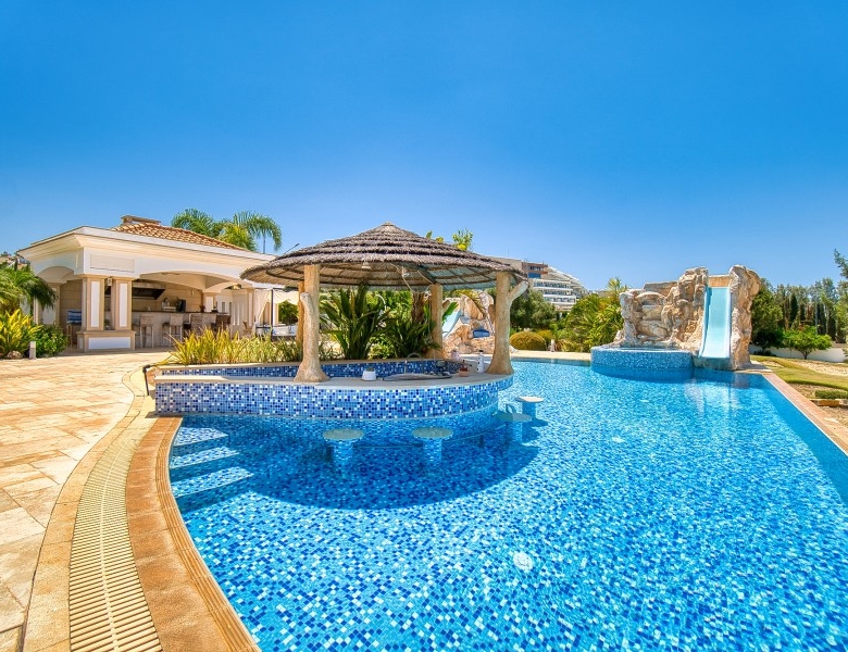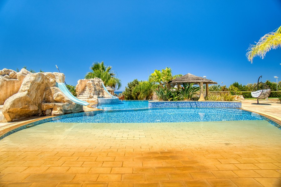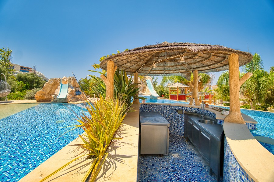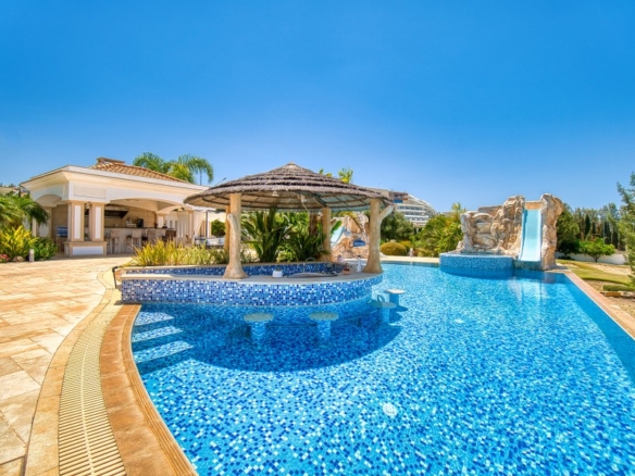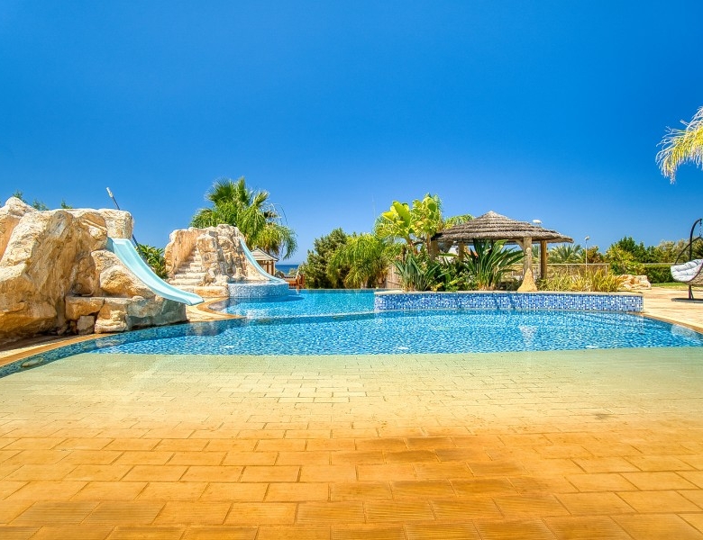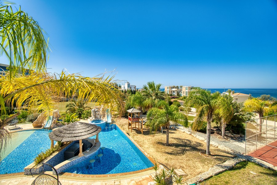 Welcome to this magnificent residence nestled in the picturesque seaside area of Peyia. Situated in an extraordinary location, this property offers unparalleled views and a truly luxurious lifestyle.Perched overlooking the Yeronissos Islands, you’ll be captivated by the stunning vistas. A virtually private beach is just a short 150-meter walk away, allowing you to indulge in the beauty of the coastal surroundings. To the right, the charming St. George fishing harbor adds to the idyllic charm of the area. Continuing along the coast, the Akamas Nature Reservation ensures the preservation of the natural landscape for generations to come.As you step into the grounds of this property, you’ll be greeted by its grandeur. The focal point is the infinity mosaic tiled, heated swimming pool, which creates a striking outdoor living space. Surrounded by natural stone patios, this area is perfect for relaxation and sunbathing in complete privacy. You’ll also have the pleasure of admiring the breathtaking sunsets and gazing at the dramatic night skies.The meticulously landscaped gardens, adorned with natural cut stone, enhance the beauty of the property. The outdoor space also features a BBQ cooking and entertainment center, providing a delightful setting for hosting gatherings. From here, you can overlook the swimming pools and take in the serene surroundings.For sports enthusiasts, this residence offers a range of facilities to enjoy. Natural stone stairways lead directly to the tennis court and the golf green, allowing you to practice your skills in your own backyard. Imagine the joy of indulging in some of the most popular sports in the world amidst this Mediterranean paradise.In addition to the generous plot size of 6000 square meters, this price includes an attached separate plot of 3000 square meters, further expanding the potential of this remarkable property.This is your opportunity to own a Mediterranean jewel and create your own personal paradise. Immerse yourself in the beauty and luxury of this exceptional residence. Contact us now to arrange a viewing and make this dream a reality.