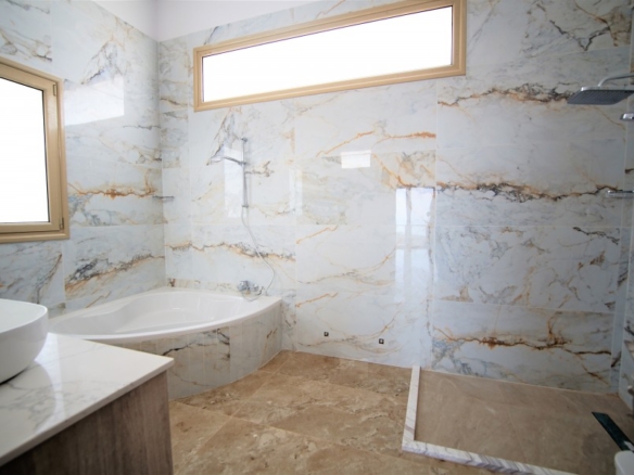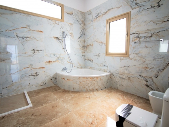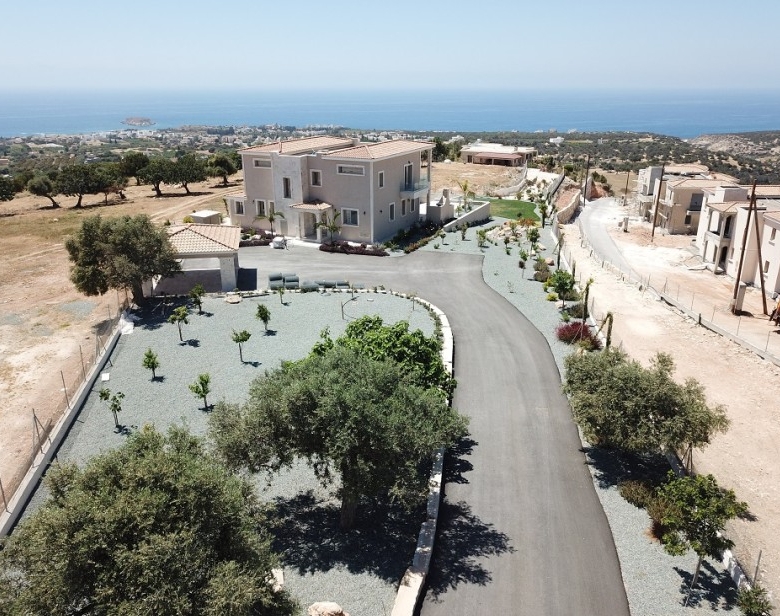 This newly constructed, ready-to-move-in villa boasts an impressive 443m² of covered living space, situated on an expansive 4000m² plot. Perched high up on a hilltop within the stunning Akamas peninsula in the Paphos district, the property offers breathtaking panoramic views, absolute privacy, and an immersive connection with nature.The villa features 5 bedrooms, providing ample space for a large family or those who appreciate generous living spaces. On the property, a private water well belonging to the villa adds a touch of exclusivity. A photovoltaic system is in place, contributing to energy efficiency, and for added security, electric gates and a double carport are part of the property.Enjoy outdoor living with an enticing private swimming pool, complemented by an outdoor kitchenette area with barbecue facilities – perfect for entertaining friends and family. The villa is thoughtfully equipped with fly screens on all double-glazed windows, ensuring comfort and tranquility.Inside, a grand marble staircase and granite worktops add a touch of luxury and sophistication. The property also boasts an extraordinary roof garden, providing a unique space to relax and entertain while reveling in the most amazing views the region has to offer.