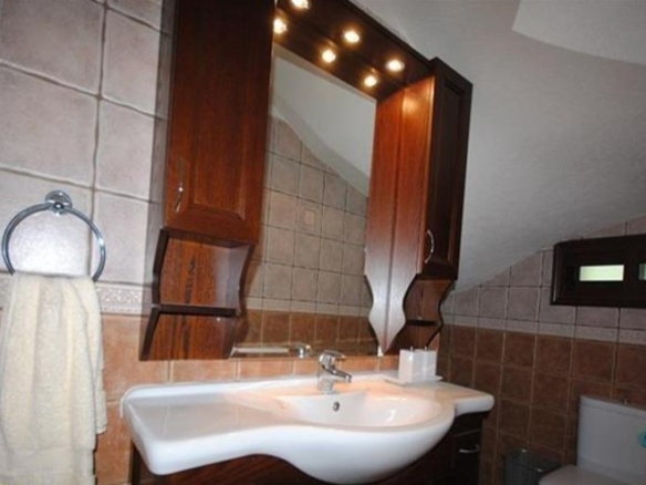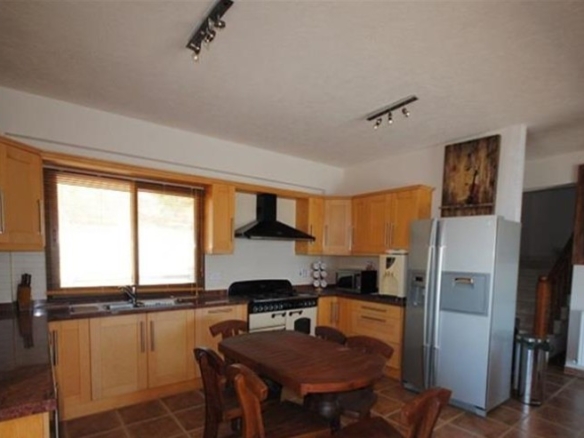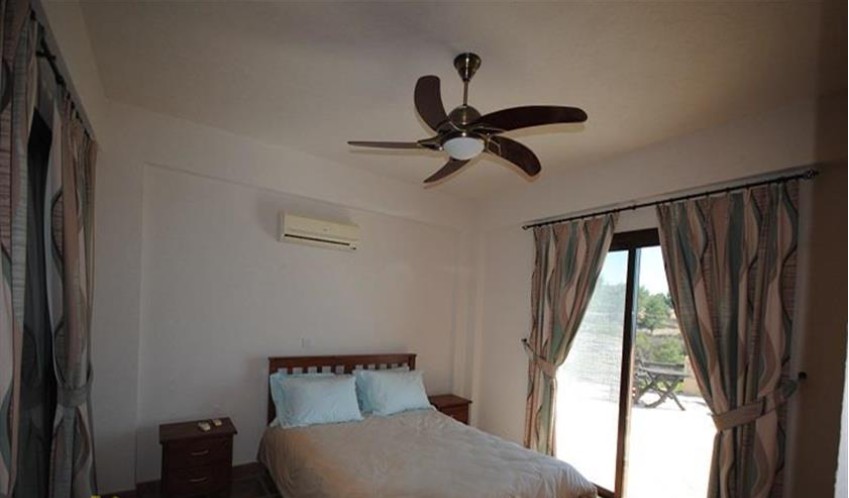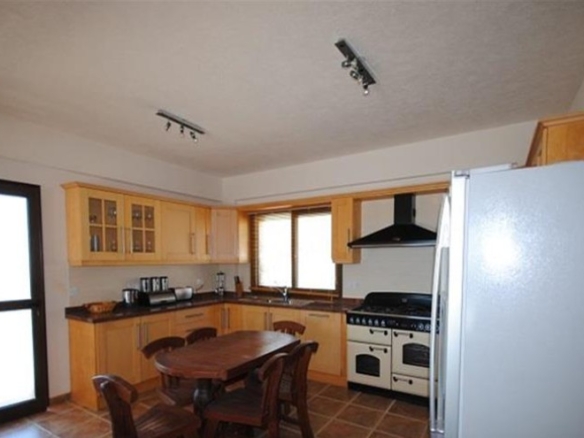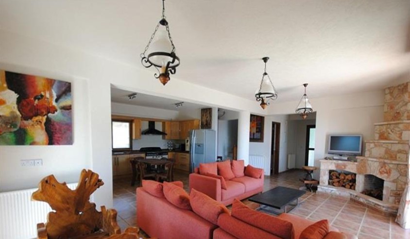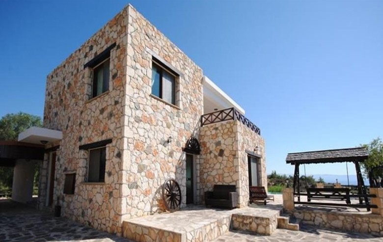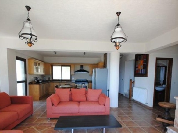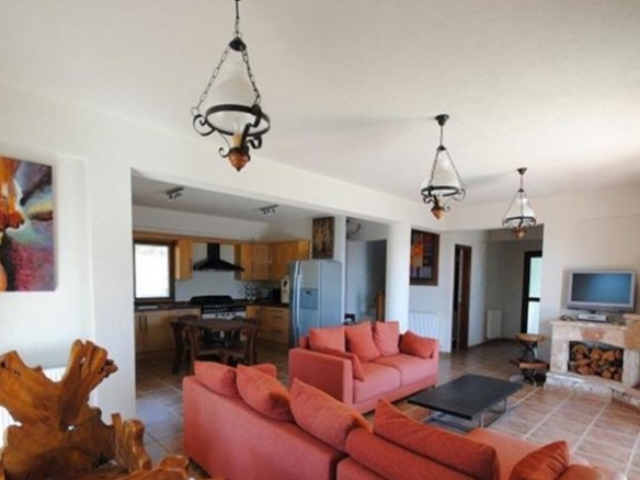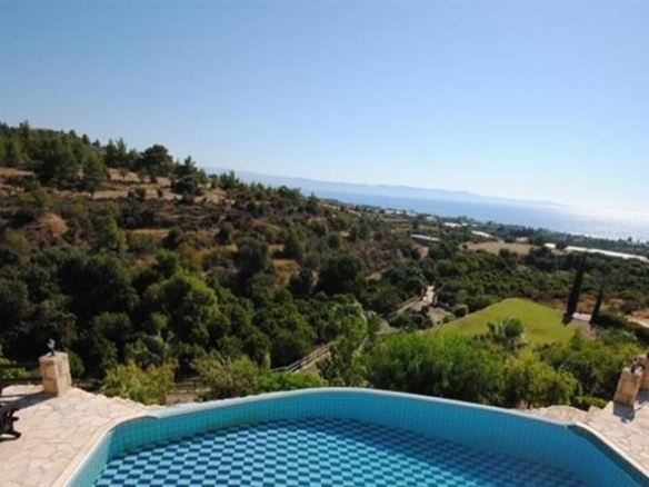 A unique county residence located high above Ayia Marina, a small but friendly village on the outskirts of Polis with picture perfect views over Paphos pine forest to the Chrysochous Bay. This stone built house has 3 bedrooms all ensuite and is on a plot of 7,900 sqm. There is an Infinity swimming pool with the most amazing views, stone buildings suitable for riding stables, etc and provision for two tennis courts. As you drive through the electric gateway to the massive driveway take a moment to fully appreciate the stunning location of this property, being next to the Paphos Pine Forest but having unique Panoramic views of the mountains and the sea beyond. The front door leads into the entrance hallway, and to the left are the guest toilets and downstairs bedroom. This is a spacious double bedroom with of patio doors leading out onto the pool area, built in wardrobes, a/c and ceiling fans and an ensuite bathroom. To the right of the front door is the is the open plan lounge / dining / kitchen area. Upstairs on the landing there is a kitchenette with sink, fridge and wine cooler and access to the remaining bedrooms and access to the veranda. The master bedroom has an ensuite bathroom with a corner Jacuzzi Bath. Patio doors lead out onto a large terrace of 48sqm where you can relax and watch the whole of the local countryside and the sea in the Chrysochou Bay. To complete the upstairs area is another double bedroom together with an ensuite bathroom. This bedroom has two balconies, one with views down to the sea and other towards the mountains. The plot is set over 2 areas – the upper area where the house is has an 12 x 5 m infinity pool and maintenance gardens, car port, large covered outside kitchen, bar and BBQ area, as well as a Utility room for storage and washing machines. Below the house is a large grassed area which can easily accommodate two tennis courts, and below this at the bottom of the property, is an area presently designed as stables for horses. These stables are stone built and on a large separate plot. these stables could easily be converted into art studios etc or used as a separate office area. There is a separate entrance to this area, through double iron gates.