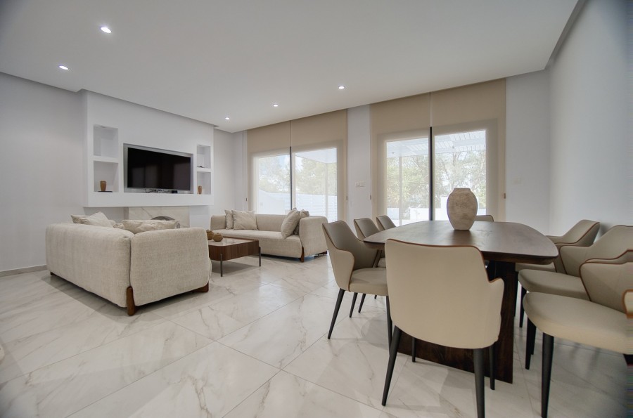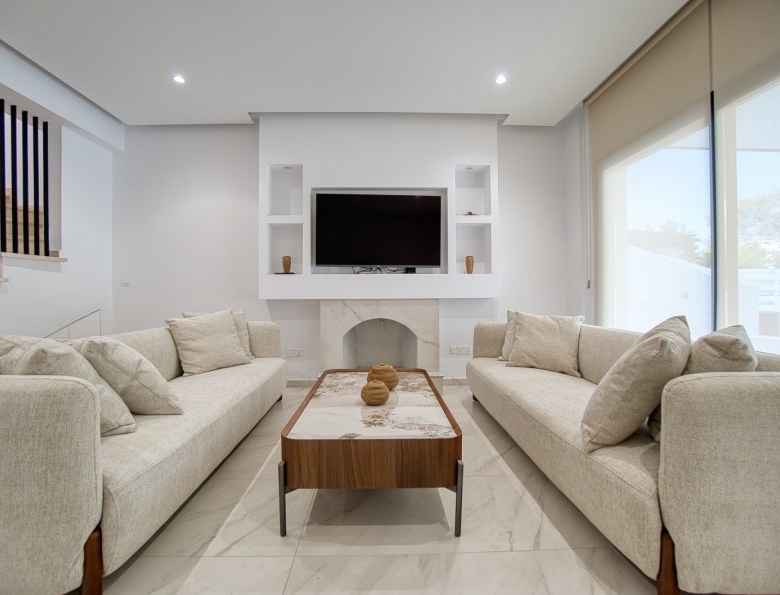 Discover this beautifully renovated and newly furnished 3-bedroom, 2-bathroom villa in the peaceful neighborhood of Tala. Designed for comfort and modern living, this home features a fully equipped kitchen with all appliances, a cozy fireplace in the living room, and AC units in every room, complemented by a VRV system in the living area.Enjoy breathtaking mountain views, a private swimming pool, and convenient private parking. Solar panels on the roof provide eco-friendly hot water heating.Experience tranquility and elegance in this exceptional villa—perfect for long-term living.