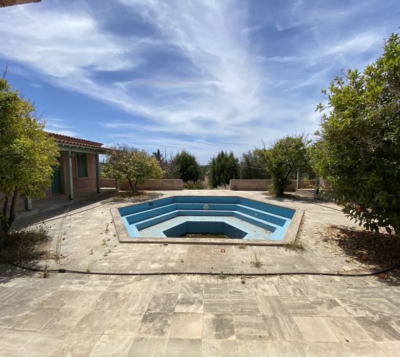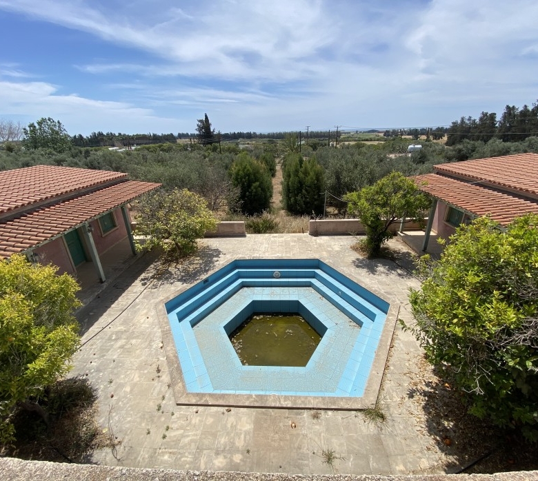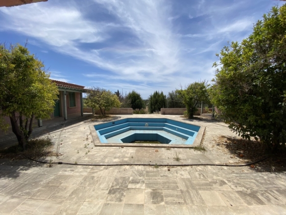This beautiful unfinished house is oozing with potential.In the main house there you have 3 large double bedrooms all equipped with their own en-suite, you have a separate kitchen with utility room and cellar which can be used as storage or a wine cellar, depending on the buyer’s needs. There are two large outhouses which are designed as self-contained studios, and a beautiful courtyard in the middle with a very artistic swimming pool modelled on the ancient baths which can be found at the Kourion archeological site near Limassol.The house also comes with a huge piece of land boasting a huge amount of different fruit trees, including 150 olive trees and 2 South American Aloe Vera plants.Upon finishing, this house will be a stunning, private paradise,e which is conveniently placed near all amenities.
