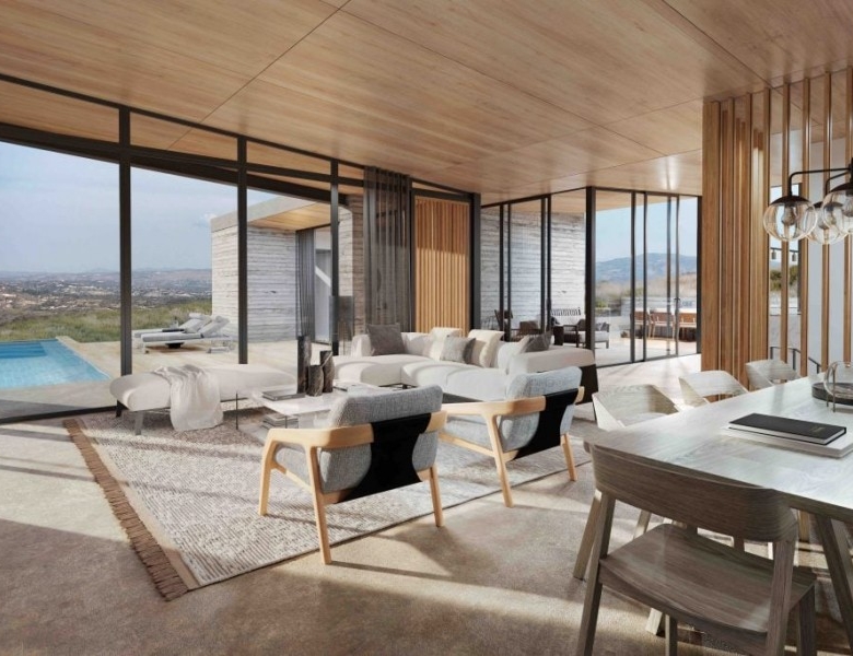 The project combines stunning social spaces all on one level including an infinity pool that flows onto an outdoor living space and inside an open plan kitchen, living and dining areas. The butterfly roof opens to the horizon views and allows light and air to flow seamlessly inside the house, blending exterior and interior living. The master bedroom suite is on the entry level and downstairs there are two further bedroom suites, perfect for guests. in this unique design a carport is integrated onto the lower level to allow private and protected private entry for the owners. This property is part of the luxury lifestyle residential resort Minthis, which offers numerous benefits, services, and world-class facilities. These include an 18-hole championship golf course with a contemporary Clubhouse, a destination wellness Spa, sports ground, hotel-style accommodation, and a lively social square featuring a bar, restaurant, cafe, and boutique stores. Residents can also enjoy the resort’s nature trails, organic garden, and playgrounds, all set within a protected Natura 2000 landscape, reflecting a commitment to sustainability and a harmonious connection with nature. Details: 3 bedrooms 4 bathrooms, 3 ensuite and 1 guest toilet 1080 square meters plot Total covered area of 238 square meters Private swimming pool Private covered parking Underfloor heating Concealed VRV system Landscaped gardens Photovoltaic panels Amenities: Clubhouse with restaurant, cafe and bar Wellness Spa 18-hole golf course Amaracus restaurant Village centre with boutique stores Sports ground with tennis academy Children’s playground Hiking and Mountain bike paths Minthis is an exclusive residential retreat perched on a tranquil hilltop within a 5 million square meter Natura 2000 protected landscape, offering a harmonious blend of modernity, tradition, and nature. inspired by the local Cypriot landscape, Minthis embraces a philosophy of holistic wellbeing, connecting residents to nature while balancing adventure and discovery with peace and tranquility. The development offers a collection of bespoke Residences, Villas, and Suites, each thoughtfully designed to capture natural light and frame extraordinary views, while harnessing the cool hillside breezes. Ranging from intimate suites to expansive residences with 2 to 5 bedrooms, these homes emphasize sustainable design and long-term value.