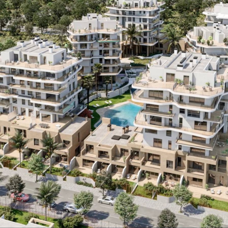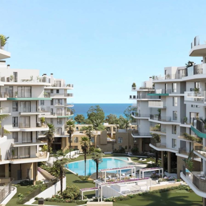Duplex apartments on the beachfront in Villajoyosa, Alicante. Magnificent luxury apartments for sale in Villajoyosa, Costa Blanca with 3 bedrooms and 2 or 3 bathrooms. The large bay windows overlooking the beautiful terraces will allow you to take advantage, all year round, of the luminosity as well as the superb sea views. Distance from the beach on foot, 100 m2. Restaurants and bars also within walking distance. The common areas are equipped with 2 large outdoor pools and a heated indoor pool, jacuzzi, sauna, Turkish bath and counter-current swimming. The residence also has beautiful green spaces, games room and children’s park. Included in the price: Air conditioning, kitchen equipped with all appliances, underfloor heating in the bathrooms as well as a parking space and a cellar. This new residence is located on the first line of the sea, in a natural area full of palm trees and eucalyptus just a few minutes from the superb town of Villajoyosa, less than 2km from the tram station which will take you easily to Alicante and to Benidorm. A unique natural setting to live by the Mediterranean Sea, Alicante. This project is a private and gated residential complex consisting of 137 very spacious homes of 1, 2, 3 and 4 bedrooms and is 100 meters from the sea.All properties have sea views. Parking and cellar included in the price.Appliances included in the price:* Ceramic hob* Electric oven* Hood* Microwave* Fridge* Dishwasher* Washer dryer SILESTONE type compact quartz worktopMaximum height of 6 floors.The common areas will offer you a ‘beach’ style swimming pool for adults and children, indoor, winter, heated pool with counter-current swimming, spa, jacuzzi, sauna, Turkish bath, gymnasium, social club and children’s play areas.An artificial river will cross the residence to offer you a relaxation area.Complete installation of aerothermal air conditioning.Electric heated floor in the bathrooms.Suspended toilets.Bathroom cabinet, mirror and bath screen.Possibility of choosing floor and wall tiles from the various options available.Security system with CCTV cameras Property ID: GH-254948-D Price: €870,000 Property Size: 86 m2 Land Area: 106 m2 Bedrooms: 3 Bathrooms: 2 Property Type: Apartment Property Status: For Sale