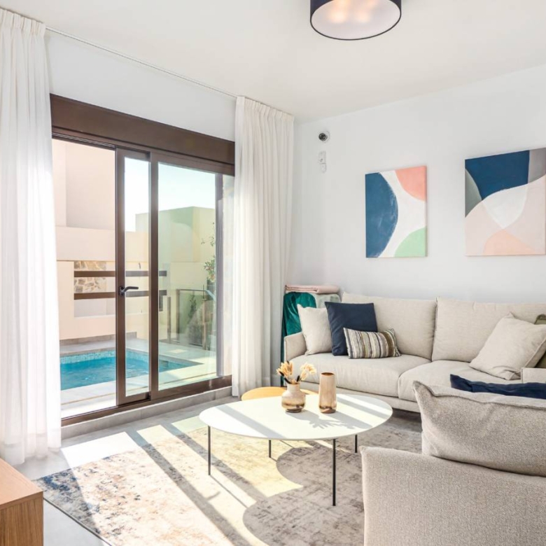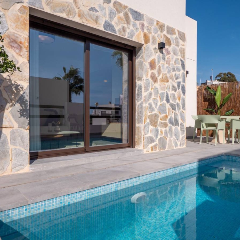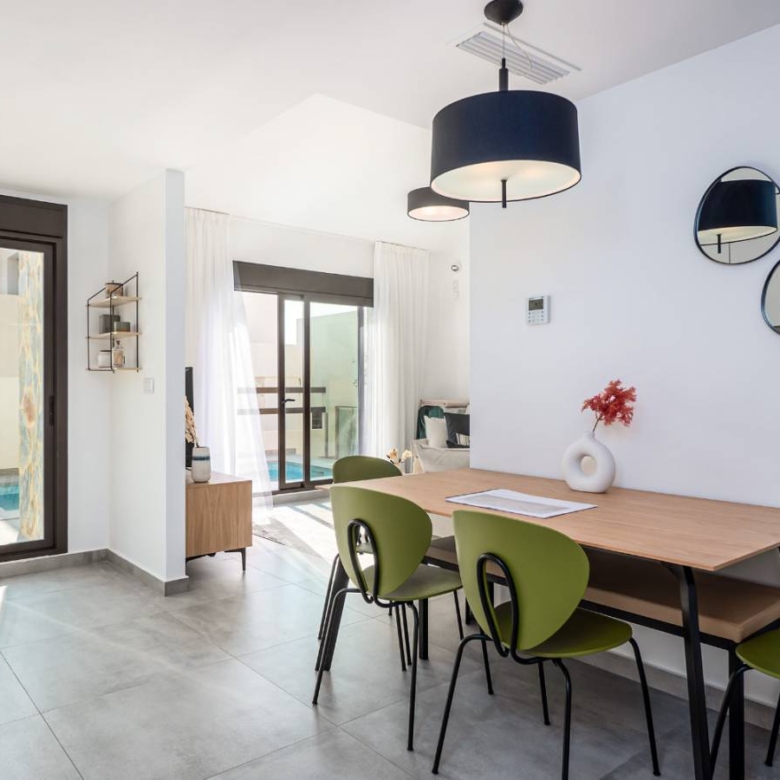 Terraced houses for sale in Villamartin, Costa Blanca, Alicante A residential consisting of 25 villas on two levels with several independent or semi-detached models with 3 bedrooms and 2 bathrooms, as well as private gardens and a large communal area with a pool. The private pool and parking space are optional in some of these villas. Extras included in the price: appliances, pre-installation of air conditioning, fully equipped alarm system, outdoor lights on terraces and garden. The project stands out for the use of durable materials and finishes of the highest quality combined with natural textures, pure and neutral colors and the best specifications with an intelligent distribution of space. Sustainability, one of our values and responsibilities, is reflected in this project with systems such as solar panels, south orientation, and our characteristic double-vented design. Delivery of the first phase: 4th quarter of 2022 Property ID: GH-307208 Price: €305,000 Property Size: 83 m2 Land Area: 133 m2 Bedrooms: 3 Bathrooms: 2 Property Type: Villa Property Status: For Sale
