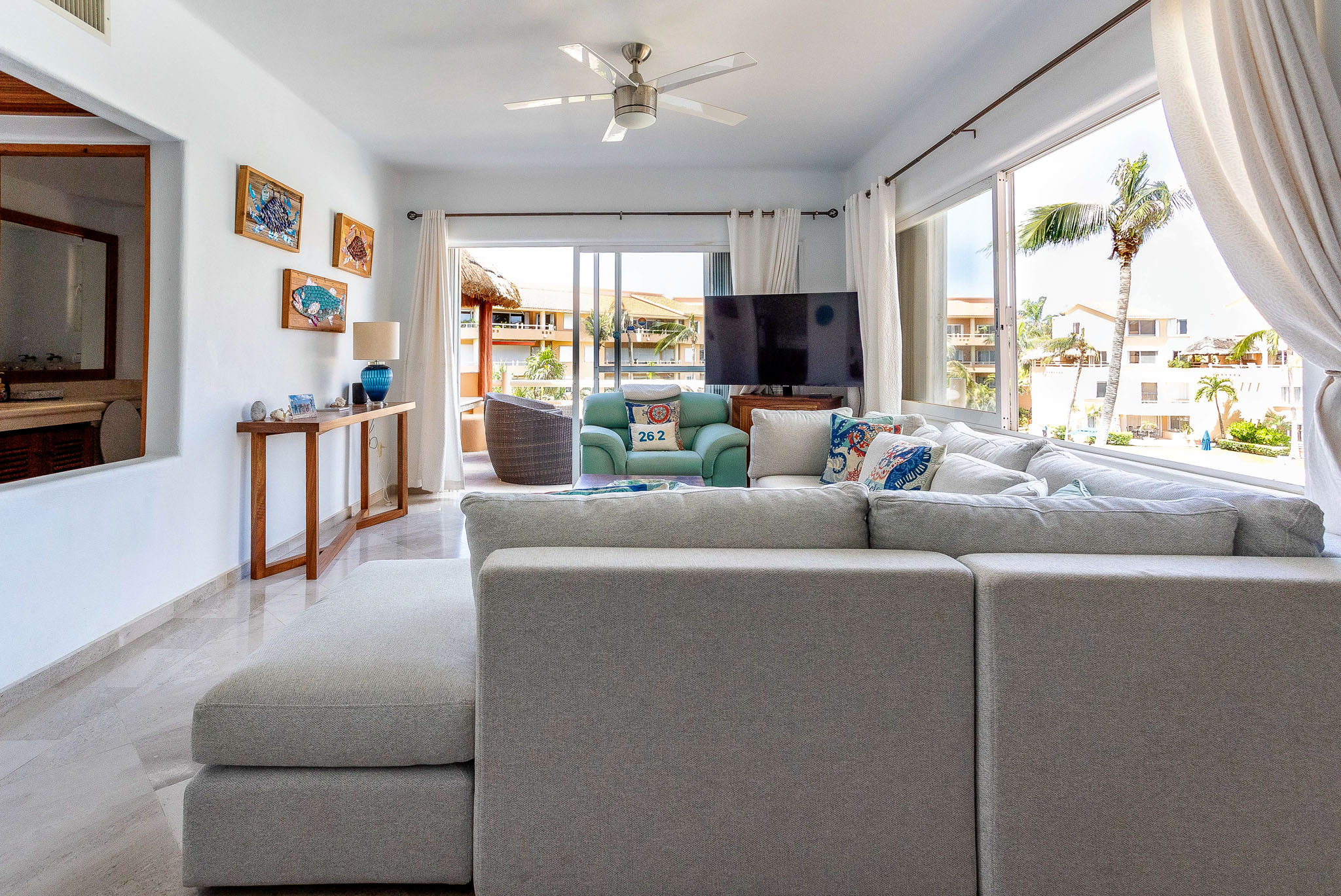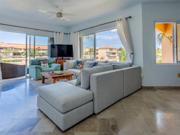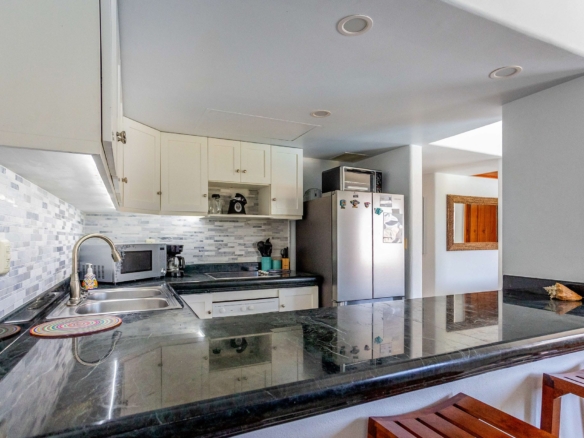 Welcome to the pinnacle of beachfront living at Villas del Mar in Puerto Aventuras. This stunning two-story penthouse offers a rare combination of modern sophistication and relaxed elegance in one of the Riviera Maya’s most sought-after communities. Nestled on the second floor of a meticulously maintained building, this residence is designed for those who seek a perfect balance of luxury, privacy, and a vibrant coastal lifestyle.