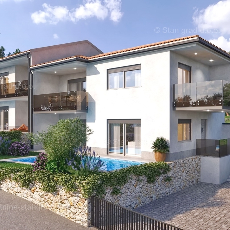 From our agency’s offer of excellent real estate in the northern Adriatic, a modern apartment built on the sought-after Croatian coastal region, the island of Krk, stands out. The offered apartment is in an urban and well-maintained location, close to the sea, the center and all necessary facilities in Vrbnik. Considering the property by type, this is a spacious one-story apartment. In a top-quality building, the apartment is located on the 1st floor. The total area of this apartment is 91 m2. Inside the mentioned area are an entrance hall, a toilet, 2 bedrooms, a bathroom, a kitchen with a dining room and a living room with access to a covered terrace. The owner of the apartment can use all the common parts and spaces of the property without hindrance. This apartment is owned by a parking space for parking two cars. In addition to the previously mentioned characteristics, the apartment has an excellent location and orientation, which provide its residents with a beautiful open view of the sea. The property is under construction, and the planned completion of the works is expected in the middle of 2025. This apartment is subject to VAT. The seller of the apartment guarantees complete and orderly documentation and a simple transfer of the property to the buyer. We are looking forward to seeing you in Kvarner, at the address of our office on the island of Krk. If you place your trust in us, the Stan Grad Immobilien agency will be happy to help you transfer the ownership rights of this property and the bill for its utility connections and services to your name.