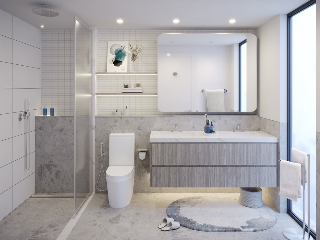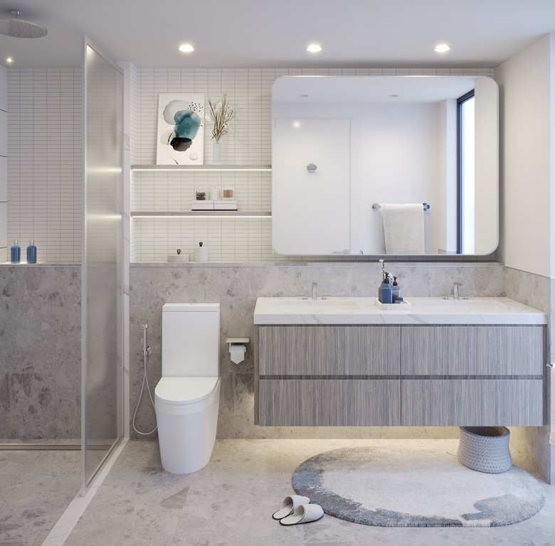 Bathrooms: Spa-inspired, with mosaic wall tiles, smart lighting, and premium sanitary ware